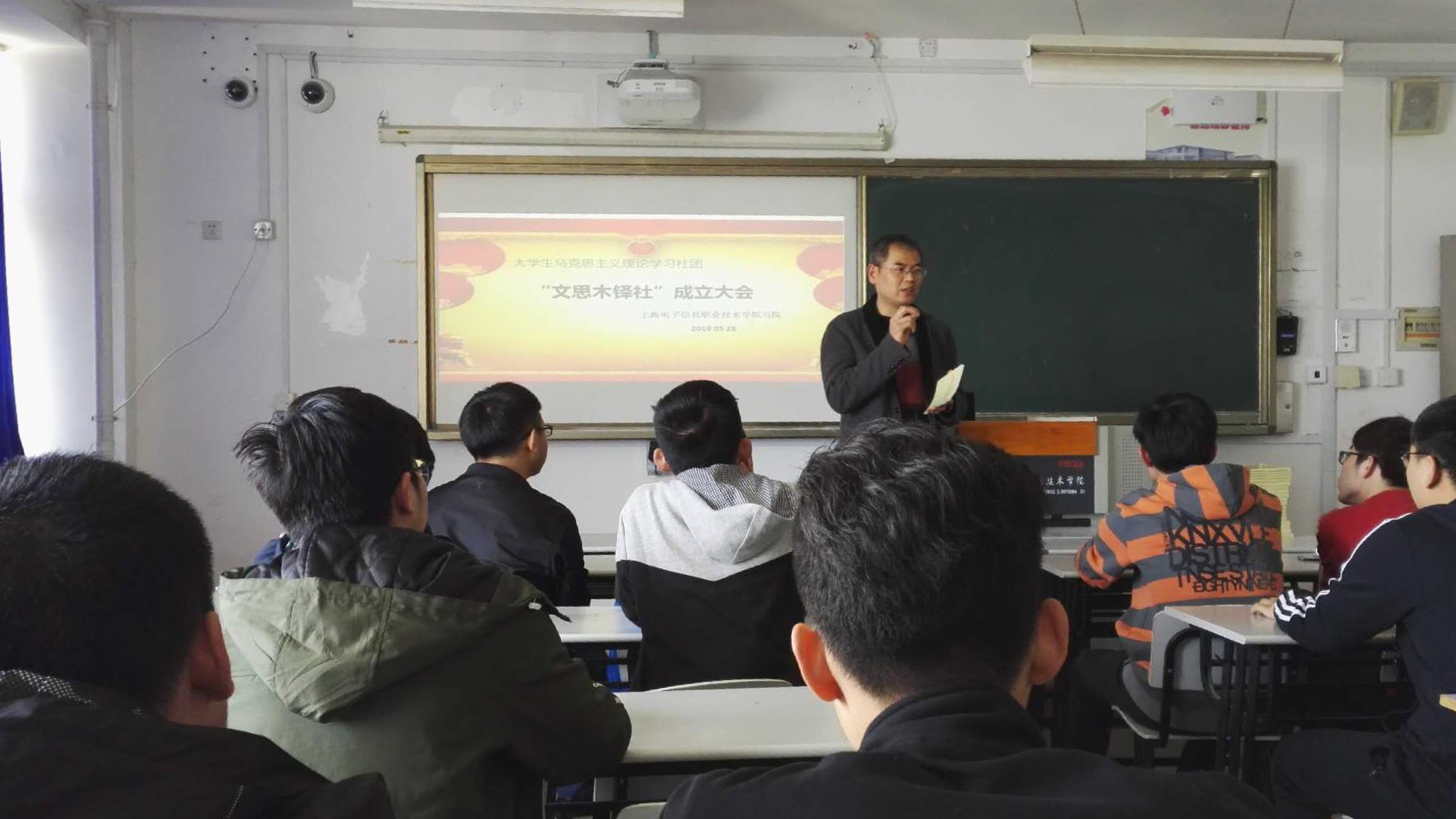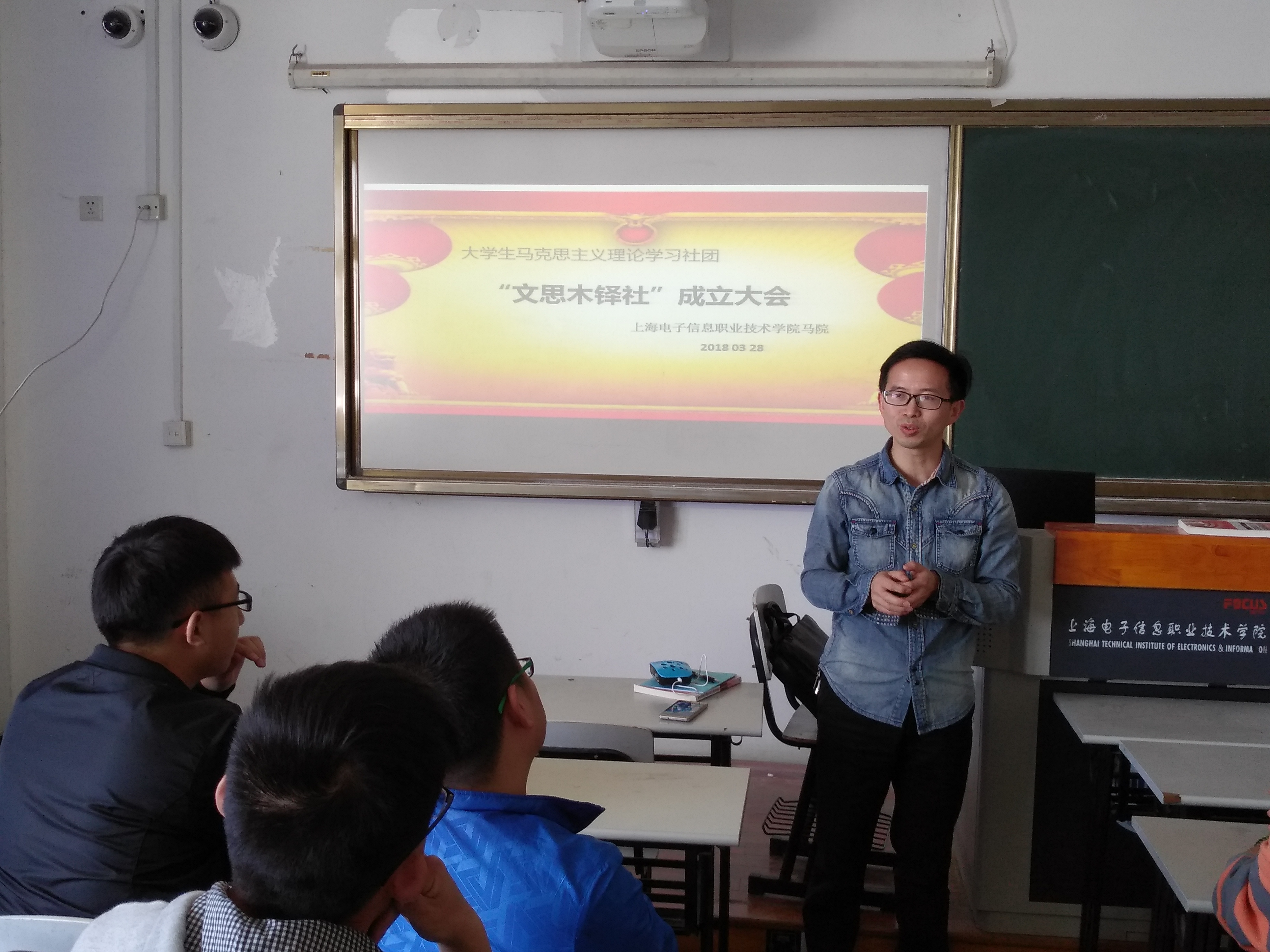 3月28日,我校大学生马克思主义理论学习社团——文思木铎社在奉贤校区中德D406教室召开成立大会。马克思主义学院副院长茌良计、指导老师谢国日以及来自通信与信息工程学院、电子技术与工程学院、中德工程学院等不同专业的二十余名社员参加了成立大会,会议由谢国日老师主持。