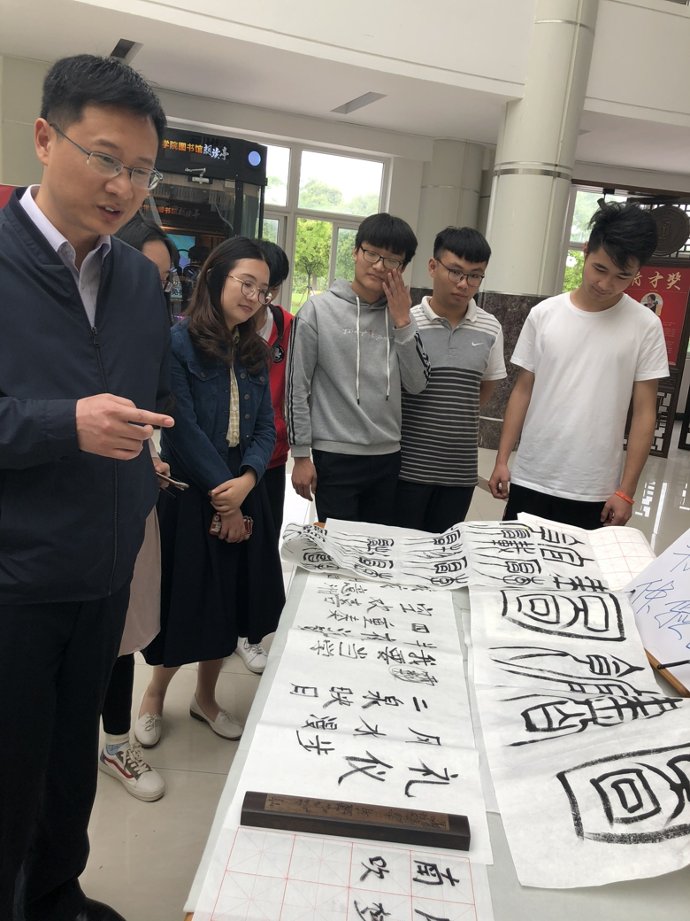 本届读书节为期七个月,共推出了10余项活动:如“书舒朗读亭•杯”校园微朗读大赛,书香申城“新时代 创新创业新征程”主题阅读征文, “超星杯”知识竞赛以及数字资源专题培训讲座等系列活动。5月7日开幕当天,在图书馆一楼大厅开展了数字资源现场推广、党建专题、考试辅导专题书展、书法体验、朗读亭体验等系列活动,吸引了众多师生的广泛参与。同学们纷纷表示,朗读亭带给了他们新奇有趣,寓教于乐的阅读体验;电子书法以创新形式让他们领略到了传统语言文字的魅力;图书馆提供的丰富数字资源与服务对平时的学习也很有帮助。学校副校长张涛一行亲临现场,对本次读书节策划的各项活动给予了充分肯定,并向图书馆师生提出了殷切的期望,希望大家把馆设品牌活动与团委、生活园区的相关活动有机结合,交互协调、跨界融合,打破图书馆的服务常规,吸引多方力量广泛参与,进一步提高阅读推广的有效性。活动前3天,超星学习通平台新增用户261人,135位读者通过朗读亭提交了录音作品共1387条。