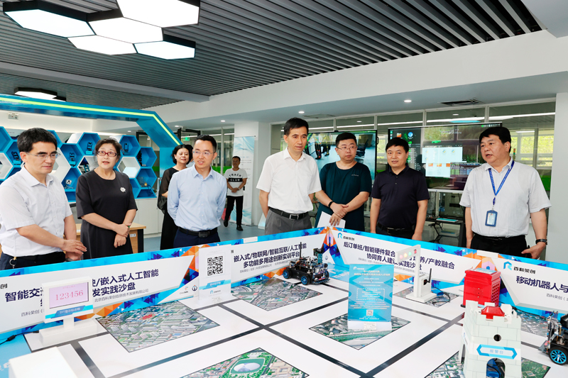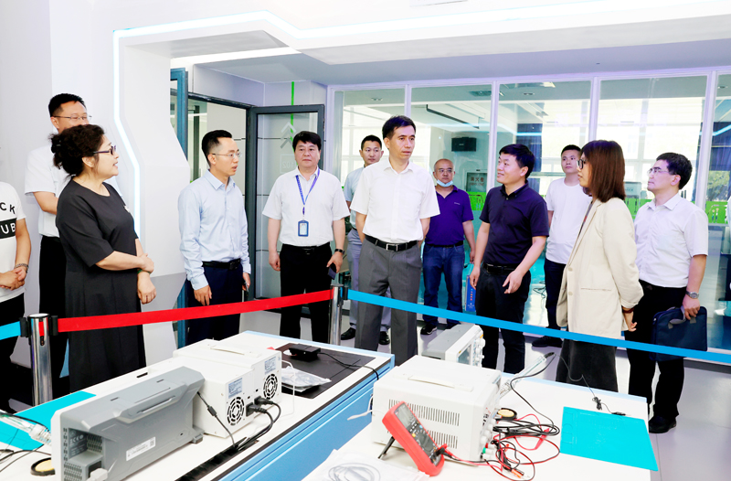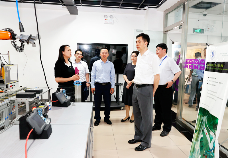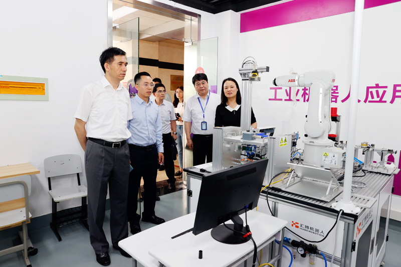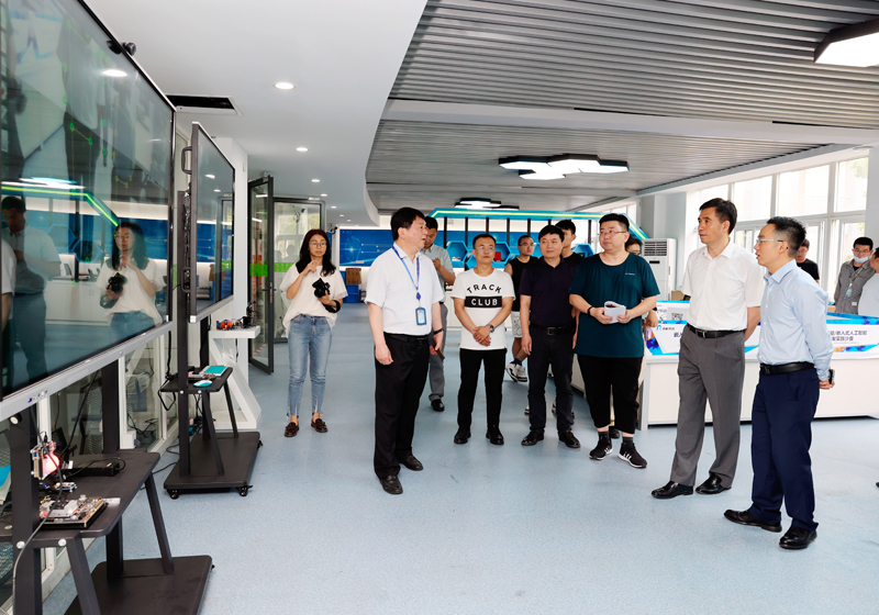 滕建勇副书记一行首先来到我校智能服务机器人研究所、工业机器人技术实训室,听取了机械与能源工程学院负责人的工作汇报,详细了解了实训中心建设规划、管理运行机制、师资队伍、教学成果及服务社会等情况,对工业机器人应用编程1+X证书工作建设成效给予充分肯定,并对实训中心建设提出指导性意见。他指出实训中心建设需要科学谋划、创新发展、整合资源,更好地服务于教学模式改革和校企合作平台构建,为学生提供优质实训环境,不断提高人才培养质量和水平。