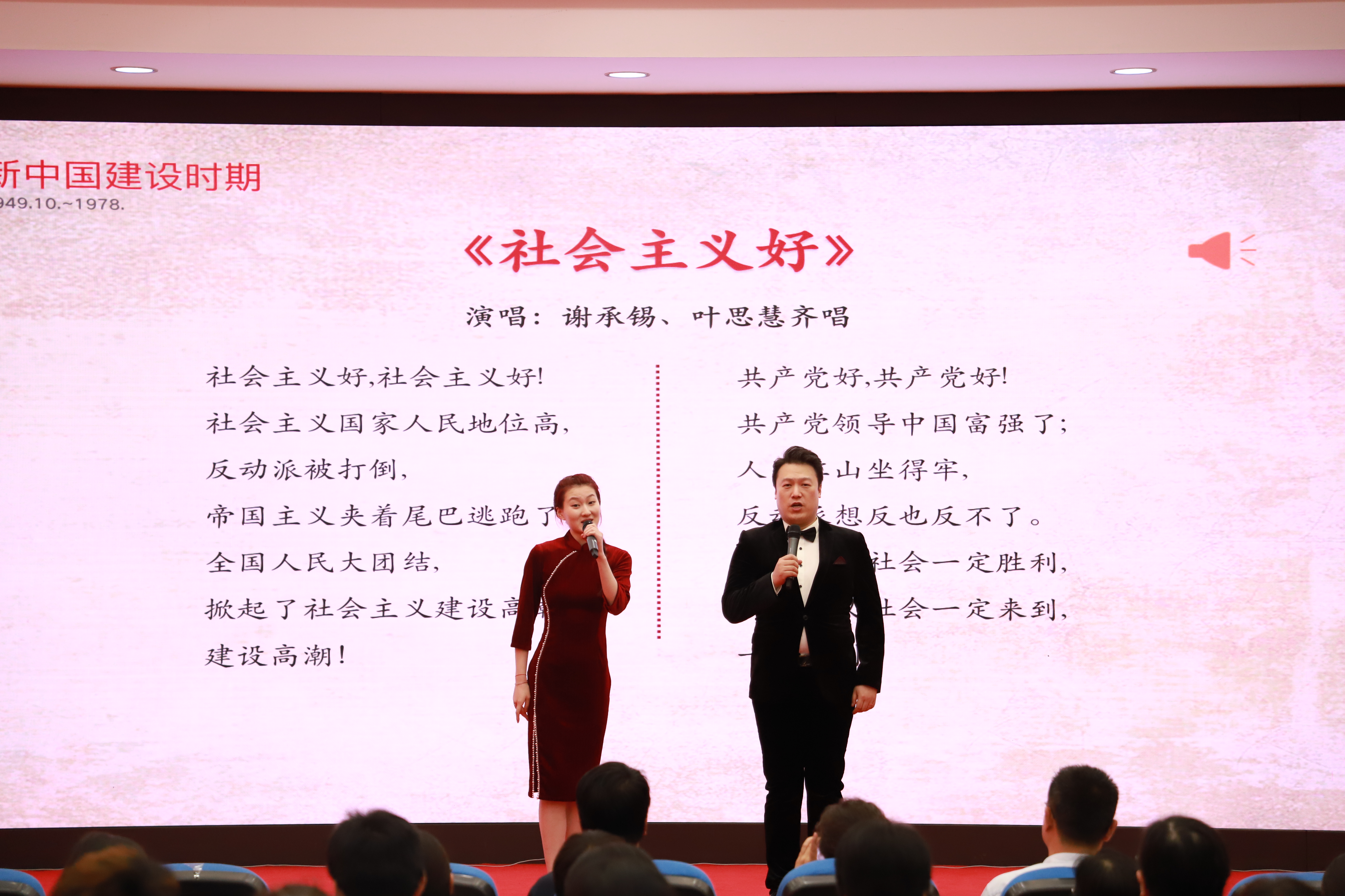 本次党课由李瑞祥老师主讲《血色浪漫-建党百年音乐之旅》。课如其名,人类历史上有些年份如同里程碑刻度着人类的进步。李瑞祥老师以及的他的团队,青年歌唱家高誉、谢承锡、叶思慧、郭冬家以史为线、以歌为珠,把本次党课分为六个部分展开演讲和演唱。从建党初期与大革命时期到改革开放时期24首革命经典歌曲,带领观众去回忆中华民族伟大复兴的激荡年代,串联百年岁月,唤醒历史廻响,激扬中华民族伟大复兴的时代号角!