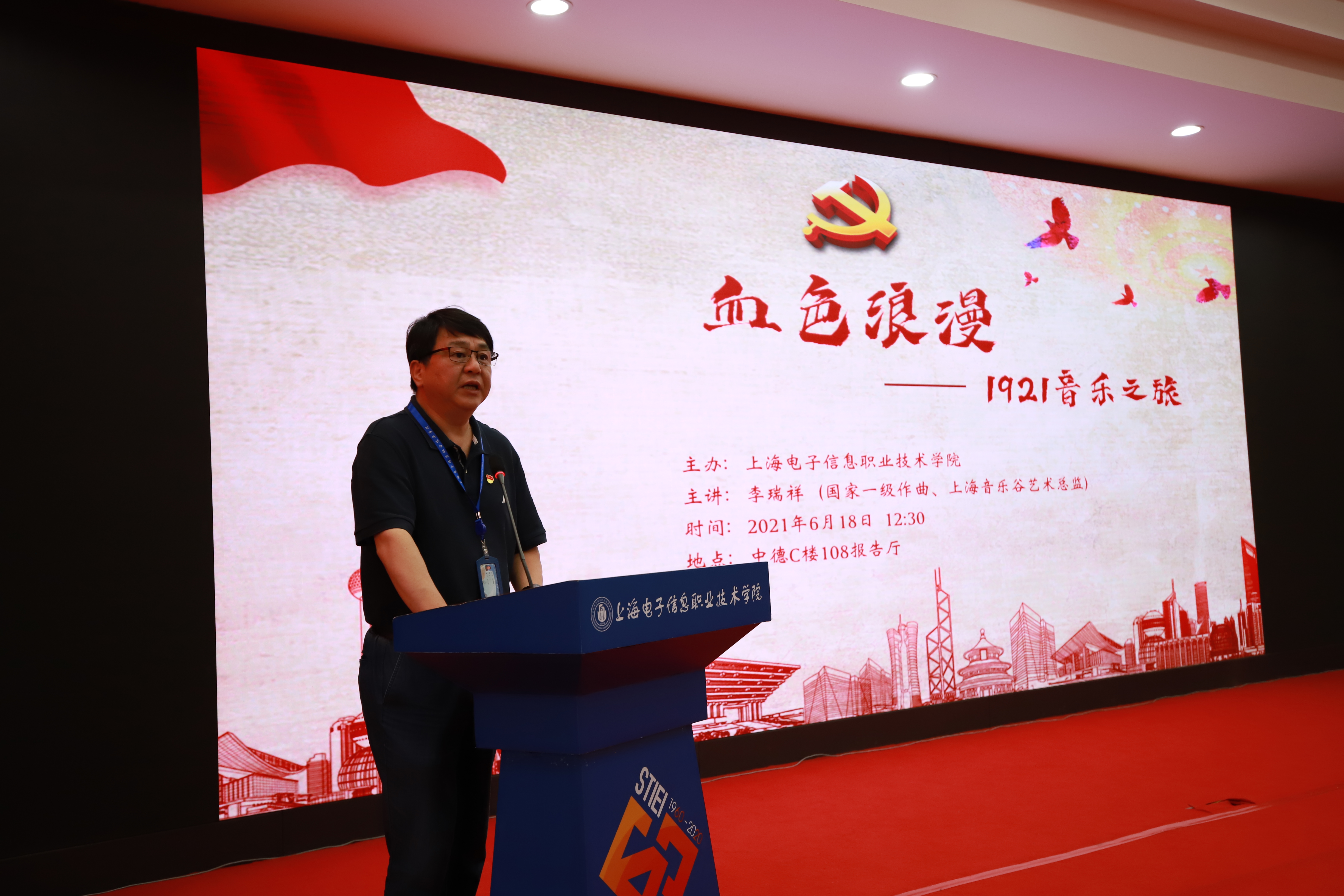 为庆祝中国共产党成立100周年,深入贯彻落实习近平总书记在党史学习教育动员大会上的重要讲话精神,追忆党的百年荣光。2021年6月18日12点30分在c108举行《血色浪漫1921音乐之旅》专题党课,学校党政领导班子、学校原党委副书记,校长杨秀英、全体中层干部、党员代表以及学校第二十期青马工程学员出席本次党课,党课由团委书记蔡林洁主持。