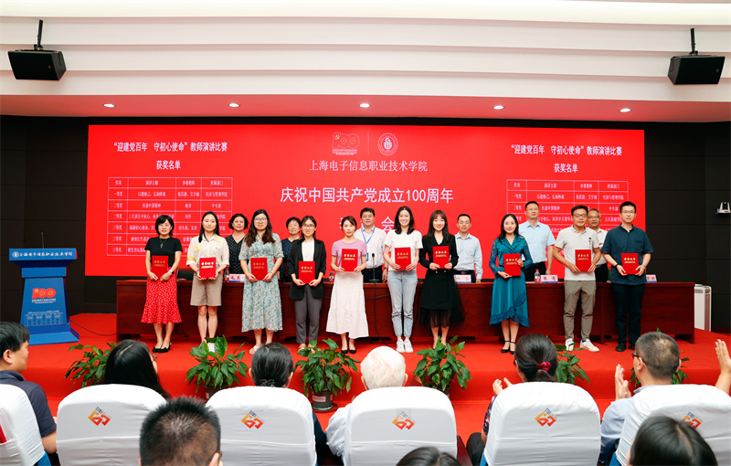 7/SPAN>月/SPAN>/SPAN>5/SPAN>日下午,上海电子信息职业技术学院庆祝中国共产党成立/SPAN>/SPAN>100/SPAN>周年表彰会在/SPAN>/SPAN>C108/SPAN>报告厅举行。学校党政领导、中层干部、“光荣在党/SPAN>/SPAN>50/SPAN>年”纪念章获得者代表、“两优一先”获得者、“四有”好老师、微党课评选及演讲比赛获奖者、新党员代表、各党总支(直属党支部)党员代表等/SPAN>/SPAN>200/SPAN>余人出席表彰会。学校党委副书记、校长赵坚主持会议。 /P> /P> 大会在庄严的国歌声中拉开帷幕。/SPAN>/SPAN>/P> /SPAN>/SPAN>学校党委副书记、纪委书记毛玉婷同志宣读《上海电子信息职业技术学院关于表彰优秀共产党员、优秀党务工作者、先进基层党组织的决定》。党委副书记、副校长张涛同志宣读《关于表彰“迎建党百年‘四有’好老师”先进个人、微党课评选获奖人员、“迎建党百年,守初心使命”教师演讲比赛获奖人员的决定》。/SPAN>/SPAN>/P> ▲/SPAN>/STRONG>/SPAN>/STRONG>/SPAN>/STRONG>向“光荣在党50年”纪念章获得者代表江行久同志献花/SPAN>/STRONG>/P> /STRONG>/P> ▲ /SPAN>/STRONG>/SPAN>/STRONG>市教卫工作党委系统“两优一先”获得者/SPAN>/STRONG>/P> /SPAN>/STRONG>/P> ▲ /SPAN>/STRONG>/SPAN>/STRONG>学校2019-2020年度“优秀共产党员”获得者/SPAN>/STRONG>/SPAN>/STRONG>/SPAN>/STRONG>/P> /SPAN>/STRONG>/P> ▲ /SPAN>/STRONG>/SPAN>/STRONG>学校2019-2020年度“优秀共产党员”获得者/SPAN>/STRONG>/SPAN>/STRONG>/P> /SPAN>/STRONG>/SPAN>/STRONG>/P> ▲ /SPAN>/STRONG>/SPAN>/STRONG>学校2019-2020年度“优秀党务工作者”获得者/SPAN>/STRONG>/P> /SPAN>/STRONG>/P> ▲ /SPAN>/STRONG>/SPAN>/STRONG>学校2019-2020年度“先进基层党组织”/SPAN>/STRONG>/P> /SPAN>/STRONG>/P> ▲ /SPAN>/STRONG>/SPAN>/STRONG>学校“四有”好老师先进个人/SPAN>/STRONG>/P> /SPAN>/STRONG>/SPAN>/STRONG>/P> ▲ /SPAN>/STRONG>/SPAN>/STRONG>学校”微党课“评选获奖者/SPAN>/STRONG>/SPAN>/STRONG>/SPAN>/STRONG>/SPAN>/STRONG>/SPAN>/STRONG>/SPAN>/STRONG>/P> /SPAN>/STRONG>/SPAN>/STRONG>/SPAN>/STRONG>/P> ▲ /SPAN>/STRONG>“迎建党百年,守初心使命”教师演讲比赛获奖者/SPAN>/STRONG>/P> 会议表彰了市教卫工作党委系统、学校“两优一先”获得者和学校“四有”好老师先进个人、微党课评选、“迎建党百年,守初心使命”教师演讲比赛获奖者,并向“光荣在党/SPAN>/SPAN>50/SPAN>年”纪念章获得者代表江行久同志献花。/SPAN>/SPAN>/P> “/SPAN>优秀共产党员”代表、通信与信息工程学院教师包晓蕾、“四有”好老师代表、经济与管理学院教师汪晓君、“先进基层党组织”代表、电子技术与工程学院党总支副书记李军锋作交流发言。/SPAN>/SPAN>/P> /SPAN>/SPAN>/SPAN>/P> 市教卫工作党委系统“优秀党务工作者”、中德工程学院党总支副书记孟秋静领誓,学校/SPAN>/SPAN>2021/SPAN>年发展的新党员面对党旗,进行庄严宣誓。/SPAN>/SPAN>/SPAN>/P> 会上,学校党委副书记、校长赵坚同志在讲话中指出,百年岁月峥嵘,百年奋斗不息。今年是中国共产党成立/SPAN>/SPAN>100/SPAN>周年,我们共庆盛世华诞,共享伟大荣光,共启新的篇章。/SPAN>/SPAN>7/SPAN>月/SPAN>/SPAN>1/SPAN>日,习近平总书记在天安门广场庄严宣告,经过全党全国各族人民持续奋斗,我们实现了第一个百年奋斗目标,在中华大地上全面建成了小康社会,历史性地解决了绝对贫困问题,正在意气风发向着全面建成社会主义现代化强国的第二个百年奋斗目标迈进。/SPAN>/SPAN>/SPAN>/P> 奋斗百年路,开启新征程。/SPAN>/SPAN>2021/SPAN>年是意义非凡的一年,是我国现代化建设进程中具有特殊重要性的一年,是乘势而上开启全面建设社会主义现代化国家新征程、向第二个百年奋斗目标进军的开局之年,也是学校“十四五”开篇布局之年。希望全体党员同志以这次庆祝建党/SPAN>/SPAN>100/SPAN>周年表彰会为契机,学习先进、弘扬先进、争当先进,以更加坚强的党性、务实的作风、强烈的责任感和使命感,确保“十四五”规划开好局、起好步,以饱满的热情和昂扬的斗志为上海教育和学校改革发展再立新功;争创一流党建,引领一流建设,培育一流人才,为推进学校“双高”标准的“双一流”内涵发展而努力奋斗。/SPAN>/SPAN>/SPAN>/P> 学校党委书记田钦同志作总结讲话。他代表学校党委向受到表彰的先进集体和个人表示热烈的祝贺,并强调必须深入贯彻习近平总书记关于教育的重要论述和对职业教育的重要指示,认真学习贯彻习近平总书记在庆祝中国共产党成立/SPAN>/SPAN>100/SPAN>周年大会上的重要讲话精神,真正做到增强“四个意识”,坚定“四个自信”,真正做到“两个维护”。要把党史学习教育与推动学校事业发展有机结合,将党史学习教育融入育人全过程,做到学史明理、学史增信、学史崇德、学史力行。要高质量完成“双一流建设”,积极推进提质培优行动计划,开展职业本科建设,有力支撑、服务国家战略和经济社会发展需要,奋力走好新时代职业教育高质量发展之路,在贯彻新发展理念、服务新发展格局中展现更大作为。/SPAN>/SPAN>/SPAN>/P> 田书记结合学校正在开展的党史学习教育,就进一步加强党对学校的全面领导,把握正确办学方向,提出三点要求:第一,坚持党的全面领导,牢牢把握推动新时代学校高质量发展的正确方向;第二,落实立德树人根本任务,牢牢把握推动新时代学校高质量发展的根本目标;第三,贯彻落实新发展理念,牢牢把握推动新时代学校高质量发展的指导原则。希望全体党员、干部、教师高举习近平新
