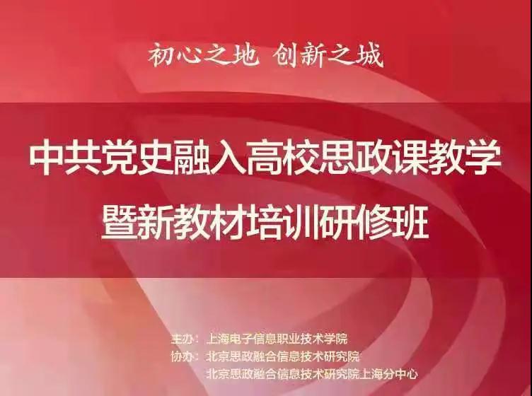 10月16日上午,由我校主办的“中共党史融入高职思政课教学暨新教材培训研修班”开班仪式通过网络直播形式成功举行。本次研修班由长三角高职高专思想政治理论课建设联盟、上海市高职高专思想政治理论课建设联盟指导,上海电子信息职业技术学院主办,北京思政融合信息技术研究院协办。研修班旨在深入学习贯彻习近平总书记“七一”重要讲话精神,深入研析、探讨和解读中国共产党建党百年与马克思主义中国化、党史学习教育融入思想政治理论课教学、高校思想政治理论课新教材培训等一系列重大理论和实践命题。