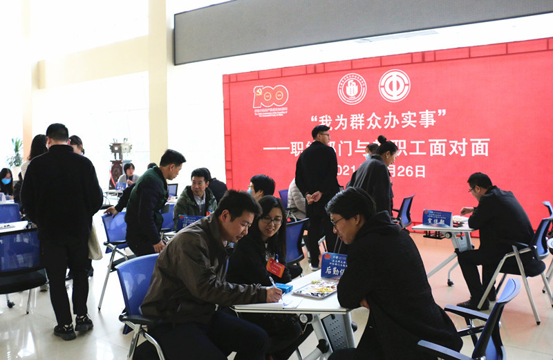11/span>月/span>26/span>日中午,学校召开四届二次教代会暨工代会期间,由校工会举办的职能部门与教职工面对面交流活动在奉贤校区/span>B/span>楼大厅一楼举行。/span>/span>/p> 举行职能部门与教职工面对面交流活动是全面贯彻习近平总书记在中央人大工作会议上的讲话精神,坚持加强和改进新时代教代会工作,不断发展全过程人民民主的有效沟通的机制和民主管理方式,致力于畅通师生员工利益诉求表达渠道,贯通民主选举、民主决策、民主管理和民主监督等各环节。/span>/p> 面对面交流活动现场,人头攒动,交流气氛热烈。教职工向信息中心建议学校今后要实现信息化平台一体化,向资产管理处建议资产维修和报废能否实现高效便捷,向后勤保卫处建议能够促成学校食堂的饭菜种类多样化,向人事处建议职称晋升、收入待遇方面的制度更加公开化。针对关乎学校发展及教师切身利益的具体建议,各职能部门向教职工们作了逐一回应,暂时不能解决的及时记录下来,表示在今后工作中加以改进,在制定政策时更科学、更接地气、更具可操作性。/span>/p> 活动以后,教职工们纷纷表示举办这样的交流活动是非常务实的举措,搭建了沟通交流高效直接的平台,拉近了与职能部门的距离,增进相互理解、形成共识。/span>本次面对面活动共有组织/span>(/span>统战/span>)/span>部、宣传部、人事处、财务处、资产处、教务处、科研处、信息中心、后勤保卫处、图书馆等10个职能部门负责人和教职工们进行了沟通交流。校工会将持续在教代会期间举行面对面交流活动,把这种形式固化下来,努力打造成为学校民主管理品牌。同时校工会将继续发挥好桥梁纽带作用,推进学校民主管理形式多样化,不断完善学校民主政治建设。(作者:王而平 /span> /span>供稿单位:校工会)/span>/p>