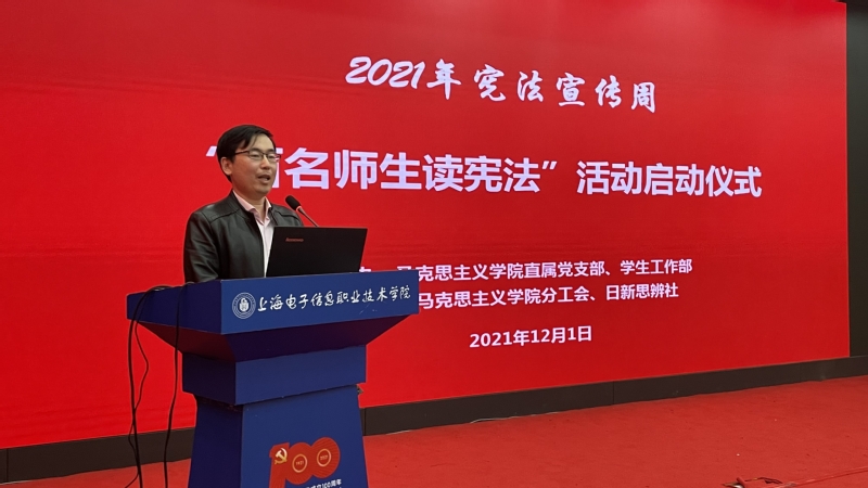 宪法作为我国的根本大法,具有最高法律效力,是治国安邦的总章程,是党和人民意志的集中体现。为深入学习贯彻党的十九届六中全会精神,以习近平法治思想为指引/span>,/span>坚定不移走中国特色社会主义法治道路,在全校师生中加强宪法学习宣传教育,普及宪法知识、弘扬宪法精神,在建党一百周年之际,特举办/span>2021/span>年宪法宣传周“百名师生读宪法”活动。/span>/span>/p> 本活动由马克思主义学院直属党支部、学生工作部主办,马克思主义学院分工会、日新思辨社承办。28名校内外教师与72名经遴选的我校学生分工参与了朗读《中华人民共和国宪法/span>》全文,这分别对应了党领导人民的/span>28/span>年新民主主义革命史和/span>72/span>年新中国史,以“百名师生读宪法”共同向建党百年献礼。本活动于/span>12/span>月/span>1/span>日在/span>C108/span>报告厅正式启动,并从/span>12/span>月/span>4/span>日国家宪法日起在我校“鹭洲学畔”平台陆续展播活动宣传短片和师生们朗读宪法的音频。/span>/span>/p> 在启动仪式上,马克思主义学院副院长茌良计宣布活动正式启动;马克思主义学院直属党支部副书记江龙结合马院实际,对/span>2021/span>年全国“宪法宣传周”的主题“以习近平法治思想为指引/span>,/span>坚定不移走中国特色社会主义法治道路”进行了解读;学生工作部副部长栾文飞对广大学生提出不仅要读好宪法而且要宣传宪法,在学习生活中做遵守宪法的模范;日新思辨社指导老师刘蔚介绍了活动要求;参加启动仪式的教师和同学们在现场共同朗诵了部分宪法内容。马克思主义学院分工会主席刘学飞主持了启动仪式并代表本次活动组委会向全校师生发出“弘扬宪法精神,师生共读宪法”的号召。/span>/span>/p> /span>/span>/p> 相信通过本次/span>“百名师生读宪法”活动,对于在我校师生中营造尊崇宪法、学习宪法、遵守宪法、维护宪法、运用宪法的良好氛围会起到良好的促进作用。/span>/span>(作者:刘学飞,供稿单位:马克思主义学院分工会)/span>/p> /span>/p>