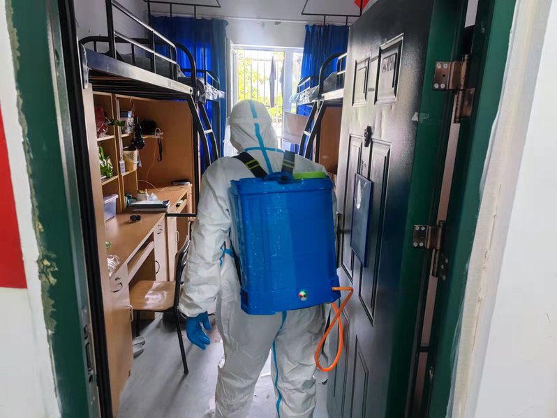 为进一步加强学校新冠肺炎疫情防控工作,提升突发状况应急处理能力。根据市教委文件精神,结合学校工作实际,贯通学院制订了《上海电子信息职业技术学院(闵行校区)核酸检测“异常人员”应急方案》。2022年3月26日晚,在校全体师生员工进行了准封闭期间发生核酸检测异常人员应急方案的学习培训,副院长张帆对应急方案进行了详细的解读。/span> 场景模拟演练/span>/strong>/p> 3月27日上午9时,贯通学院在校全体师生员工参加了校园内发生核酸检测异常人员的演练,通过两个场景的演练确保全体师生员工知道在校园突发核酸检测结果异常时,如何做到快速反应、及时控制、妥善处置。/span>/p> 场景一 核酸检测“异常人员”原地等待区疾控中心转运/span>/strong>/p> 医务室接区疾控中心通知后,在疾控机构到校前,第一时间上报学院防控防疫领导小组和贯通学院负责人,并立即启动应急预案。校园广播告知全校师生戴好口罩并停在各自固定场所,不再随意走动。根据“异常人员”的身份类别,师生通过教务科提供的班级课表,确定该“异常人员”所在位置,物业等人员通过后勤部门,确定该“异常人员”所在位置。学校联系上级指挥部门的同时,校区后勤、校办、学生科、教务科等职能部门相关人员立即穿戴二级防护服,佩戴N95口罩,展开现场应急工作。/span>/p> 物业安排门卫立即关闭校门,禁止任何人员出入。安保人员第一时间对该楼栋外围进行物理封闭,维持现场秩序。物业安保人员穿戴二级防护服并佩戴N95口罩,向“异常人员”和同区域内“密接者”配发N95口罩,并要求佩戴。接区疾控中心通知相关师生员工原地待命,等待疾控车辆进校转运。/span>/p> 待区疾控转运“异常人员”和同区域内“密接者”后,楼内由校区主值班对校内人员进行清点并上报学院疫情防控领导小组,以便区疾控后期进一步排查。物业指定消杀人员进入楼栋,对“异常人员”所在教室、寝室等场所、各层楼道、厕所等公共区域进行终末消毒。/span>/p> 场景二 核酸检测“密接者”进入指定健康观察点等待转运/span>/strong>/p> 接属地疾控中心通知,物业安排门卫立即关闭“异常人员”所在楼栋全部大门,禁止任何人员出入。物业安保人员穿戴二级防护服并佩戴N95口罩,向“异常人员”配发N95口罩并要求佩戴/span>,送到校门西侧办公室为隔离观察区,等待疾控中心车辆进校转运。向“异常人员”同区域内“密接者”配发N95口罩并要求佩戴/span>,原地待命。物业指派安保人员对楼栋周围进行物理封闭,疏散围观人群,维持现场秩序,保证转送路线畅通。/span>/p> 宿舍管理人员及医务室专人在做好相应防护措施后,依次护送同场所“密接者”沿生活园区北侧道路进入校内3号住宿楼二楼隔离健康观察点,健康观察点进行校内隔离,等待区疾控中心转运。物业指定消杀人员全程保持5-10米距离对“异常人员”及其“密接者”经过区域进行消杀工作。同时物业指定消杀人员进入“异常人员”所在楼栋,对其寝室、各层楼道、厕所等公共区域进行终末消毒。/span>/p> 后勤保卫处协调食堂根据校区总值班统计名单,立即启动套餐配送工作,由专人专车配送至3号住宿楼,第一时间保证师生员工及时用餐。/span>/p> 应急演练的总结/span>/strong>/p> 应急演练结束后,贯通学院/span>总结分析本次演练全过程,认为本次应急演练按照预定计划,顺利完成了各项模拟演练场景,达到了预期的效果。本次演练进一步明确了各部门的工作职责、工作流程,为切实维护校园安全稳定和师生身体健康与生命安全打下坚实的基础。(供稿:贯通学院/span>)/span>/p>