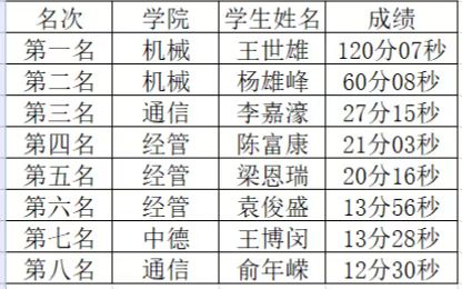 比赛期间,学生参赛热情十分高涨。初赛期间,大一、大二参赛人数超过3000多人。经过初赛选拔,来自电子技术与工程学院、通信与信息工程学院、机械与能源工程学院、经济与管理学院、中德工程学院、设计与艺术学院、外语学院的112位学生进入总决赛,并最终决出男子、女子前八名。