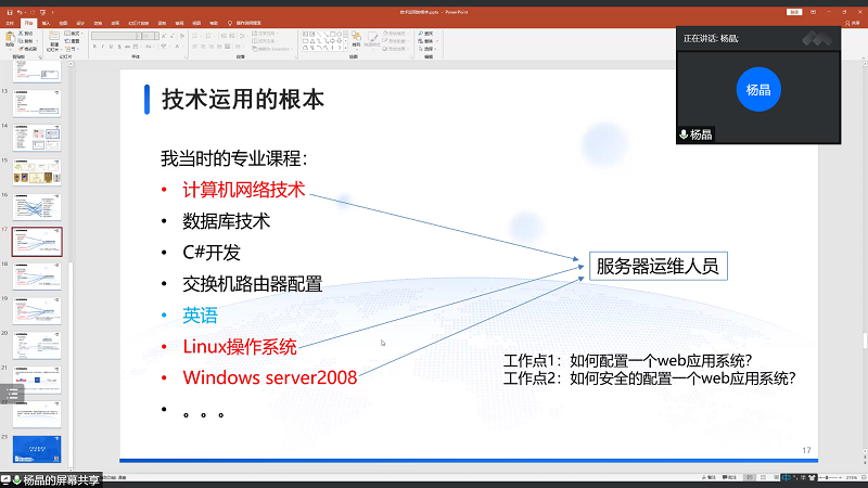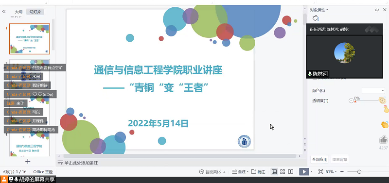5月14日,通信与信息工程学院职业讲座圆满举行。/span>通信与信息工程学院党总支书记陈林河、副书记范晓燕、/span>钰门国际贸易(上海)有限公司等七家企业嘉宾、往届毕业生杨晶等/span>三/span>位优秀/span>校友出席讲座。学/span>院/span>20/span>/span>19级/span>、/span>20/span>/span>20级近1000名学生聆听讲座,讲座由就业指导教师胡婷主持。/span>/p> /span>/p> /span>讲座伊始,陈林河书记向用人单位对学院的关心支持表达诚挚谢意,向往届优秀毕业生来院做朋辈分享表示感谢,并说明了开展本次讲座的主要目的,期待校企双方加强合作交流,希望学生们专心听、用心悟、有所得。/span>/p> /span>/p> /span>/p> /span>/p> 讲座分三个环节进行。/span>钰门国际贸易(上海)有限公司王彬老师、百师导企业发展(上海)有限公司陈豪老师分别从求职面试形式及应对技巧/span>、实习期间常见职场法律问题等方面展开分享,帮助学生提升求职素养,以期学生更好地做好步入职场的准备。/span>领冠数码科技(上海)有限公司/span>等/span>五/span>家企业嘉宾结合/span>自身专业领域和工作经验带来/span>专业大咖分享,并针对学院部分专业/span>开展行业趋势分析、介绍公司招聘需求。学院/span>往届毕业生杨晶、黄云杰、唐忆蕾三位/span>优秀/span>校友,分别结合各自的学习和工作经历向学弟学妹分享学习方法和工作心得。/span>讲座/span>最后,范/span>晓燕副/span>书记对企业/span>嘉宾/span>和/span>优秀校友/span>表达感谢,/span>期待能进一步紧密合作与融合,同时鼓励学生/span>们积极应聘/span>,/span>更加自信/span>地/span>展现才华/span>。/span>/p> 本次讲座加深了校企合作,架起了供需对接的桥梁。/span>通信与信息工程学院/span>将以此为契机,进一步与企业深度融合,实现合力育人,促进学生更好就业。(供稿单位 /span>通信与信息工程学院)/span>/span>/p>
