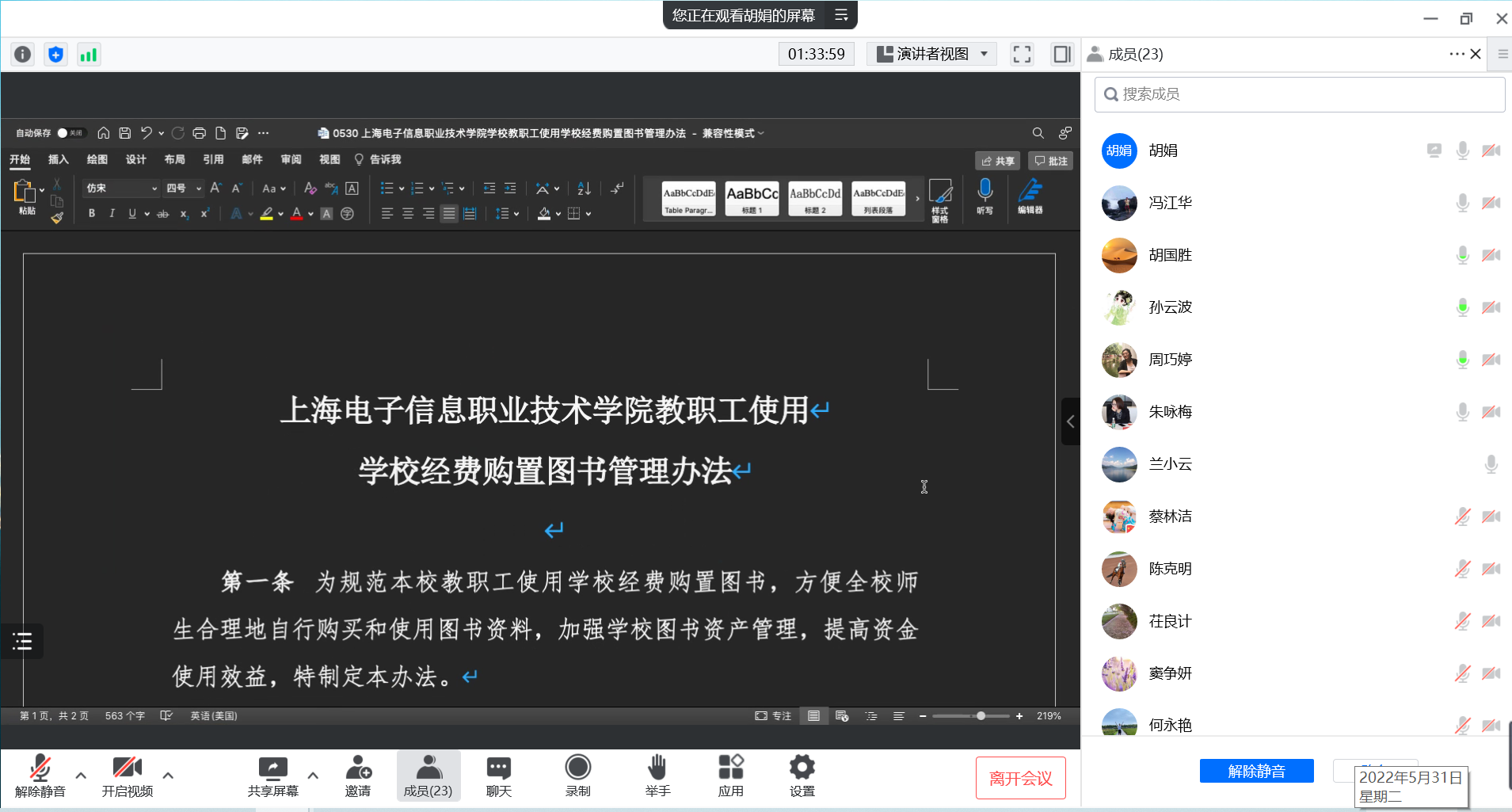 图书馆副馆长胡娟介绍了2021年数字资源使用情况。图书馆数字资源涵盖数字图书、数字期刊、视频、音频等,种类丰富,内容覆盖面广。2021年度各数据库使用活跃,如中国知网数据库全年使用总次数达853158次,与上一年度同期相比,登录次数增长210%,下载次数增长230%。在对计划新增数字资源进行介绍呈现后,胡娟老师向会议提交了2022年数字资源采购计划。参会委员重点评估、讨论了新增数字资源的使用需求、预计使用量、覆盖面、使用流程等,同时对原有资源和新增资源的衔接使用等提出了意见建议。经过充分交流,参会委员表决通过了2022年资源采购计划。会议还讨论审议了《上海电子信息职业技术学院教职工使用学校经费购置图书管理办法》。/p>