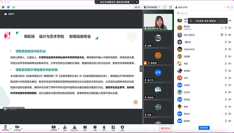 为/span>加强/span>课程思政建设,/span>发挥好每门课程的育人作用/span>,/span>提高人才培养质量,/span>6月2日/span>/span>下午,学校/span>组织全校专任教师线上召开/span>课程思政/span>展示交流会。/span>会议由党委副书记毛玉婷主持/span>,/span>360/span>余名专任教师参加交流会/span>。/span>/p> /span>/p> 毛玉婷副书记/span>指出,学校自/span>2017/span>年启动课程思政建设以来,/span>开展了丰富的培训、说课、评课、交流展示等一系列活动,/span>全体教师课程思政建设水平不断/span>提高。/span>教师深入思考课程育人意义,深入研究课程育人方法,潜心设计课程,/span>育人意识和育人能力不断提高并取得了阶段性建设成果/span>。同时,她也提出不足:不少教师在如何建设课程思政上存在用心不够、思政融入不贴切的问题,课堂育人意识和育人能力仍有欠缺。学校现处于职业本科创建冲刺阶段,教师应提高育人水平,深化课程内涵建设。她表示,希望通过今天的分享交流会,老师们可以互相学习和借鉴,/span>积极培育课程思政特色,/span>提高课程育人实效/span>。/span>/p> /span>/p> /span>/p> /span> /span>/p> 汪晓君/span>、郭虹铄、/span>李昉三位老师分别进行课程思政示范课展示,他们/span>从不同的专业角度出发,挖掘专业知识中的思政元素,将课程思政元素有机融入课堂,引导教师课程教学内容、教学方法上注重思政元素的无形浸润和渗透作用,/span>充分发挥教师队伍/span>“主力军”、课程建设“主战场”、课堂教学“主渠道”作用,使各类课程与思政课程同向同行,形成协同效应,构建全员全程全方位育人大格局/span>/span>。/span> 交流会最后,/span>毛玉婷副书记/span>作总结和点评。/span>她/span>对三位老师在专业教学设计中巧妙融入思政元素给予高度评价,/span>三位老师虽然都只是针对各自课程的一个章节进行了分享,但呈现的教学目标和整个章节的知识体系、知识原理却是完整的。她指出,课程思政建设的关键就是育人要素、育人目标要自然融入到知识体系当中,做好价值引领,/span>实现/span>“/span>/span>润物细无声/span>”效果。/span>她/span>希望/span>全校教师/span>深刻认识课程思政建设的重要性,/span>二级学院要进一步提高政治站位,全力/span>/span>推进课程思政建设工作。/span>/p> 此次/span>课程思政/span>展示交流会/span>有效推动了/span>我校/span>课程思政深入开展,让老师们进一步坚定了/span>“守好一段渠、种好责任田”的使命担当,明确了知识传授与价值引领必须同频共振的育人职责,也有力提升了老师们开展课程思政的/span>/span>思想认识和育德能力/span>。/span>(/span>文:胡燕/span> /span>供稿单位:教师工作部)/span>/p>