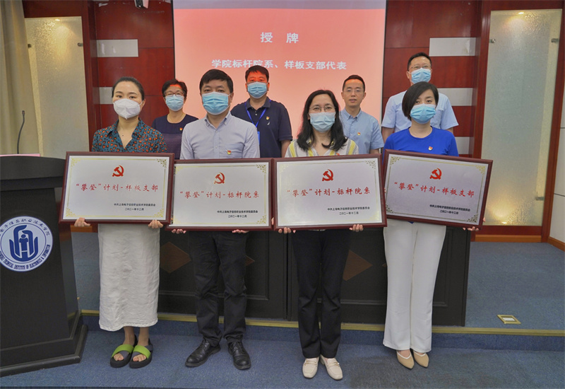 接着,党委副书记、纪委书记毛玉婷宣读学校质量提升工程——“攀登计划”项目验收结果。党委书记田钦,党委副书记、院长赵坚,党委副书记、纪委书记毛玉婷,党委副书记、副院长张涛为市教卫工作党委系统样板支部和学校标杆院系、样板支部代表授牌。
