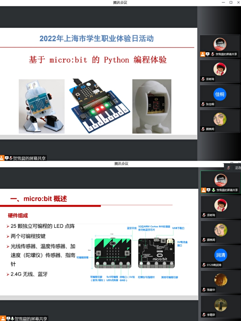 7月16日上午,继续教育学院组织举办2022年上海高职院校“职业体验日”活动之“小小程序员”项目。本次活动采取线上体验方式,面向全市中小学生开放,授课老师现场直播基于micro:bit的Python编程体验,带领体验者直观感受一个程序员或嵌入式开发工程师的实际工作状况。/span>/p> 共计30余人参与了此次暑期职业体验活动,学员们通过micropython编辑器对LED点阵进行程序编写,实现文字、图像、动画的显示,掌握程序编写的基本方法,实现对按钮的控制,完成创意项目“忧伤的宠物”。参加项目体验的学生免费获赠开发板,使每位学员能够真实体验编程效果,直观有趣。/span>/p> “小小程序员”项目属于Arm-Stem编程课,主要帮助学生快速入门Micro:bit,通过软硬件结合的方式,让孩子们在实操中了解程序运行的基本逻辑。通过综合性主题项目,培养孩子们的动手能力、发现问题和解决问题的能力,在实践中实现作品功能的逐步完善。
