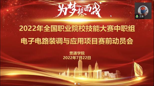 7月22日,贯通学院召开2022年全国职业院校技能大赛中职组电子电路装调与应用赛项赛前动员会。我校19级应用电子技术(五年一贯制)2班吴鸿彬同学作为该赛项上海参赛选手之一,将于8月4日赴青海省西宁市青海交通职业技术学院参加比赛。本次赛前动员会以线上线下相结合的形式举行,参赛选手吴鸿彬及其父母,贯通学院直属党支部副书记、副院长王晟,副院长张帆,指导教师强浩,电子技术系主任陈晓婷,班主任周飞鸣参加本次会议。/span>/span>会议由张帆老师主持。/span>/p> /span>/p> 张帆老师介绍了学校在赛项组织协调等方面所做的工作及目前的准备情况,特别对参赛阶段防疫要求及出行要求做了详细的说明。王晟老师首先对指导教师和参赛选手备赛期间所做的努力给予肯定,同时对系部和班主任所做的沟通协调工作表示感谢,并特别叮嘱参赛师生要配合赛项主办方做好各项防疫工作,在接下来的一周里继续做好赛前的训练,比赛期间充分展现我校师生良好的精神风貌。吴鸿彬同学的父亲感谢学校领导和老师对孩子在专业上的教育和指导,在训练期间的关心和帮助,看到学校所做的充分准备感到非常放心。/span> /span>/p> /span>/p> 选手/span>吴鸿彬/span>同学表示,/span>这次比赛前的训练得到学校领导和老师的支持和鼓励,尽管前期训练受到了上海疫情的影响,但是他/span>将以饱满的精神状态,积极的拼搏精神投入到比赛中去,在全国大赛的平台上拓展视野、锤炼自己,力争赛出最佳水平,勇攀高峰为学校争光/span>。/span>(/span>作者:陈晓婷 供稿单位:贯通学院)/span>