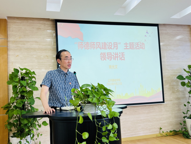 会议最后,姚光文院长作总结讲话。他从“爱心”和“责任心”两方面对全体教师提出要求,希望老师们能够在学习和生活中帮助学生,理解学生,成为学生的人生导师;要对国家、学校、学院、学生、同事、家庭有高度的责任心,共同严守师德底线,坚守育人初心,提高师德修养,增强师德建设责任感,做无愧于时代,无愧于人民的好老师,为学校创建职业本科贡献力量,以实际行动迎接党的二十大胜利召开。(供稿单位:公共基础学院)