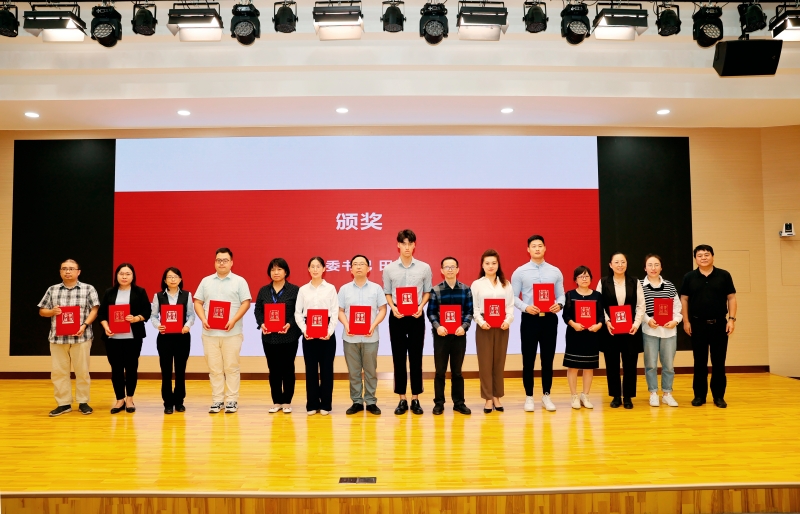 学校党委书记田钦为获得荣誉称号的教师颁奖。