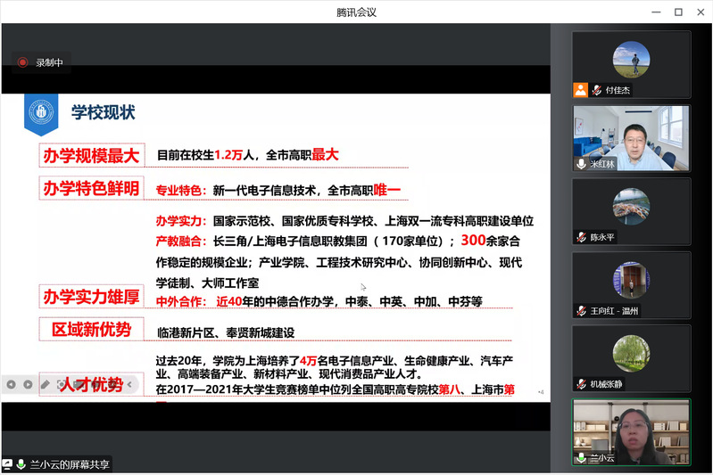 兰小云处长向各位专家介绍了我校目前的发展现状、办学定位、产教融合战略等情况。重点提到我校的应用型科研定位,通过建设科研机构和平台、建设数字化转型创新中心等举措为教师搭建向校外进行技术服务的桥梁。