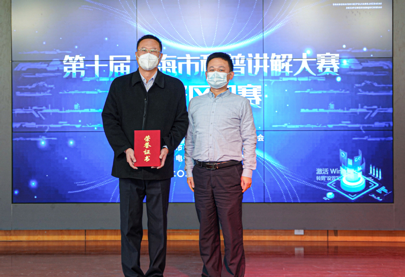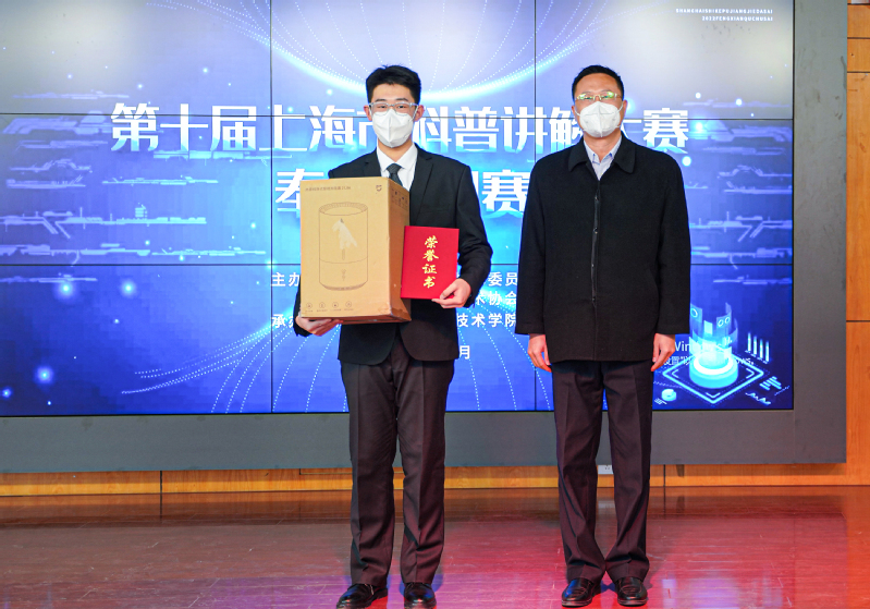 奉贤区科委党组成员、区科协副主席李杰为上海电子信息职业技术学院颁发优秀组织奖。