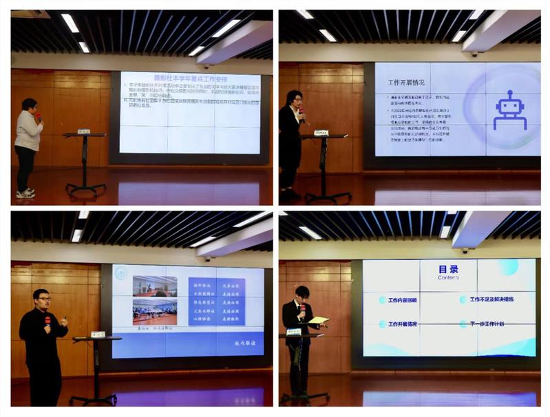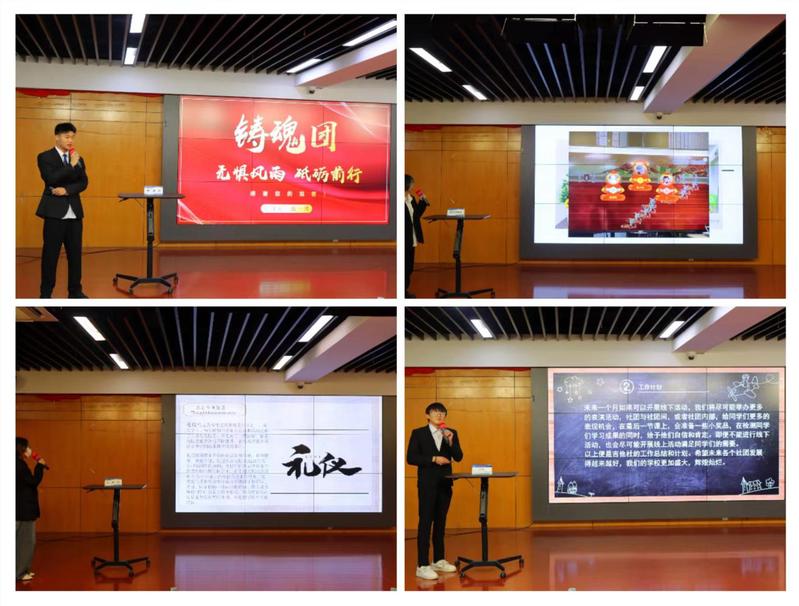 会议伊始,由主持人介绍述职评议规则,考核组将结合学生社团建设管理工作实际,围绕思想引领建设、社团内部建设、工作开展情况、校园文化活动四项内容对参加工作总结述职的社团进行综合打分。其中,铸魂团汇报代表在展示中表示,铸魂团将坚定贯彻落实习近平强军思想,加强国防教育和征兵宣传力度,在学校需要的时候挺身而出,不惧艰难险苦,保证完成各项任务。人力资源管理学社、舞蹈团等社团也在汇报中罗列了多项社团成就,展现出各社团独具的特色与不凡的风采。