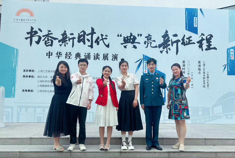 为深入学习贯彻党的二十大精神,培育和践行社会主义核心价值观,传承和弘扬优秀传统文化,传承国学经典,2023年6月9日,上海工艺美术职业学院主办的“书香新时代 ‘典’亮新征程”中华经典诵读展演活动在嘉定校区大礼堂隆重举行,我院受邀表演节目《用青春拥抱新的春天》。