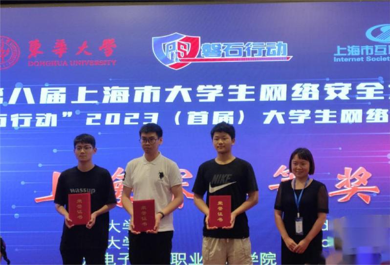 6月10号,由上海市教育委员会、上海市通信管理局联合主办,东华大学和上海市互联网协会承办的第八届上海市大学生网络安全大赛暨“磐石行动”2023(首届)大学生网络安全邀请赛决赛在东华大学举行。决赛前,来自全国的273支队伍参加了5月19日-20日的线上初赛,成绩优秀的30支队伍入围决赛。我校学生张文狄、余一凡、刘子涛组建shell战队在上海赛中获二等奖,邀请赛决赛中获三等奖。shell战队由申安网络安全产业学院张月红老师指导。