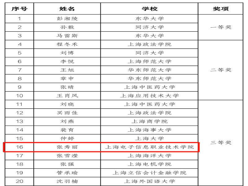 6月21日,由中共上海市教育卫生工作委员会、上海市教育委员会主办的上海高校辅导员主题班会展示活动在东华大学延安路校区落下帷幕。我校中德工程学院辅导员张秀丽与来自全市各高校的辅导员选手同场角逐、竞展风采,最终获得比赛三等奖的好成绩。