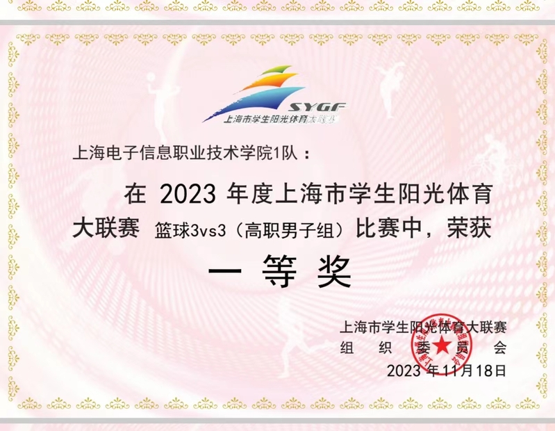 近日,由上海市教育委员会、上海市体育局、共青团上海市委员会主办,上海市校园篮球联盟协办的上海市学生阳光体育大联赛三对三篮球赛在上海交通大学拉开“战”幕。我校篮球队1队成员姚晨(申安学院)、李赟杰(电子学院)、张嘉诚(机械学院)、萨拉(经管学院)、吕昊臻(通信学院)获2023年上海市学生阳光体育大联赛篮球三对三(高职男子组)比赛一等奖。