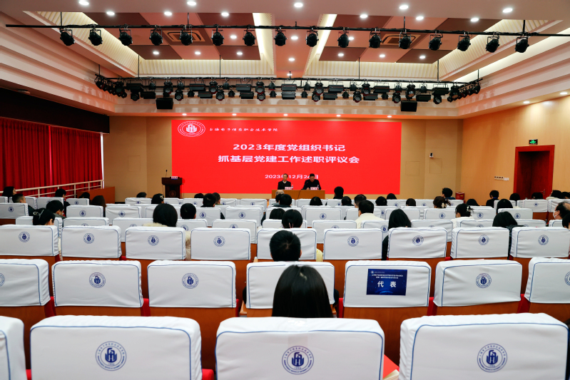 12月26日上午,学校召开2023年度党组织书记抓基层党建工作述职评议会,听取各党总支(直属党支部)负责人抓基层党建工作述职,组织开展评议。校党委书记傅建勤,党委副书记、副院长张涛,各党总支(直属党支部)负责人,基层党支部书记,组织员和各党组织的党员代表等60余人参加会议。会议由张涛主持。