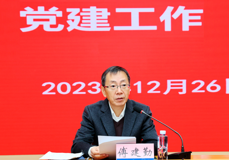 傅建勤对各党总支(直属党支部)年度工作述职进行总结点评。他指出,2023年学校各级党组织坚持以习近平新时代中国特色社会主义思想为指导,加强党对学校的全面领导,发挥党建引领,聚焦深度融合,在职业本科创建的冲刺阶段,克服困难,团结奋斗,展现了很好的精神状态和积极的精神面貌。各党总支、直属党支部在落实党建主体责任,党建引领和推动学校事业高质量发展上,进行了有益的探索与实践,也取得了一定成效。主要表现在:一是管党治党政治责任全面夯实;二是党的创新理论铸魂育人持续深化;三是基层组织体系建设强基赋能成效突显;四是党建引领保障事业发展效能增强。
