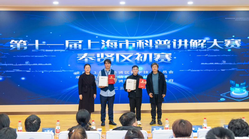 上海科技会展有限公司科普集群总监孙凤杰,上海求实科普研究所所长张亮、上海科技报社高级记者吴苡婷,华东理工大学资源与环境工程学院团委书记曹悦为三等奖获奖选手颁奖。