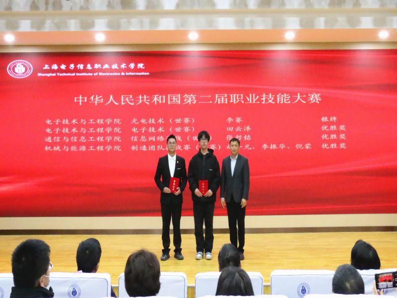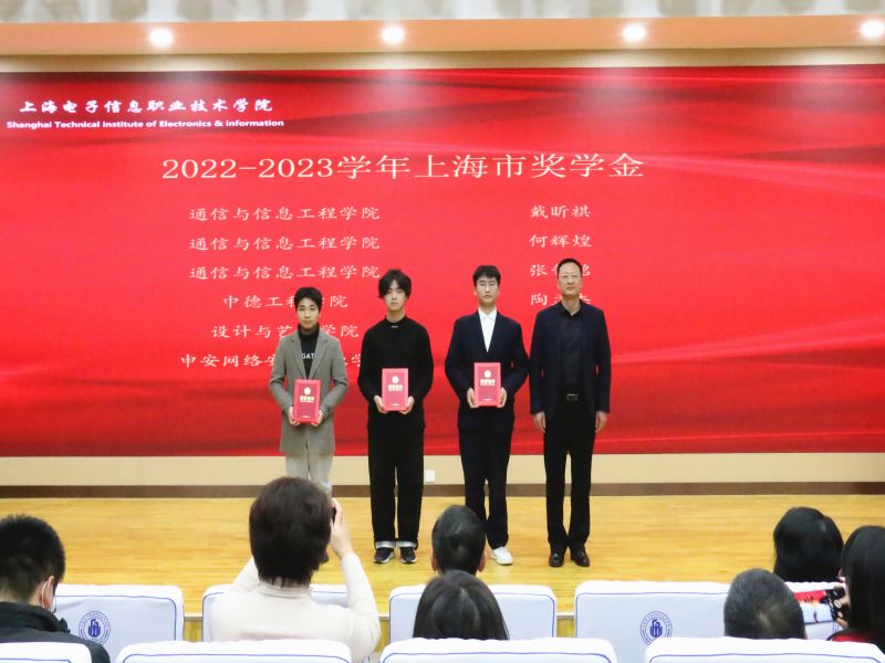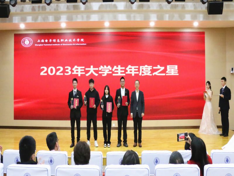 申安网络安全产业学院梁雅婷、通信与信息工程学院张琦、机械与能源工程学院王世雄、经济与管理学院金紫怡、电子技术与工程学院李赛分别荣获2023年学校“尚德之星”“笃学之星”“竞攀之星”“弘美之星”“致用之星”。电子技术与工程学院钟顺瀚、中德工程学院卓创团队、通信与信息工程学院张经纬、设计与艺术学院唐韵、机械与能源工程学院赵一凡获2023年学校大学生年度之星提名奖。傅建勤为5名年度之星和5位提名奖同学颁发证书、奖杯。