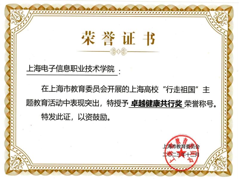 上海高校“行走祖国”主题教育活动“卓越健康共行奖”