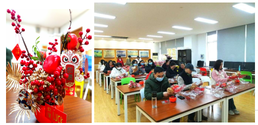 1月22日,设计与艺术学院在奉贤校区E106教室举办2024年迎新茶话会。活动现场温馨雅致,各式各样的年宵花卉和工具摆满了工作台,新年氛围感染了每一个参加活动的教职员工。