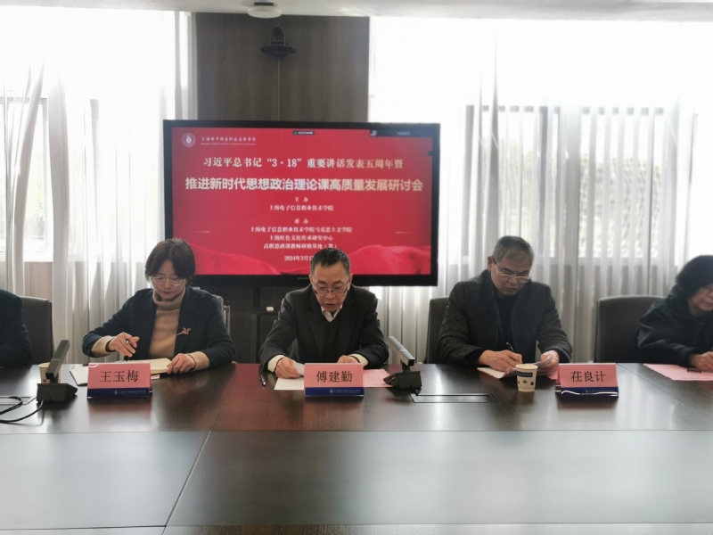 为深入学习贯彻习近平新时代中国特色社会主义思想,特别是习近平总书记“3.18”重要讲话精神,进一步推进我校思想政治理论课高质量发展,在习近平总书记“3.18”重要讲话发表五周年之际,3月15日下午,我校在中德B楼205会议室召开了习近平总书记“3.18”重要讲话发表五周年暨推进新时代思想政治理论课高质量发展研讨会。校党委书记傅建勤出席会议并发表讲话,来自本市及兄弟省市近二十所学校的马克思主义学院负责人、思想政治理论课教师等100余人参加了会议,会议采取线上线下相结合方式进行。我校马克思主义学院副院长茌良计主持会议。
