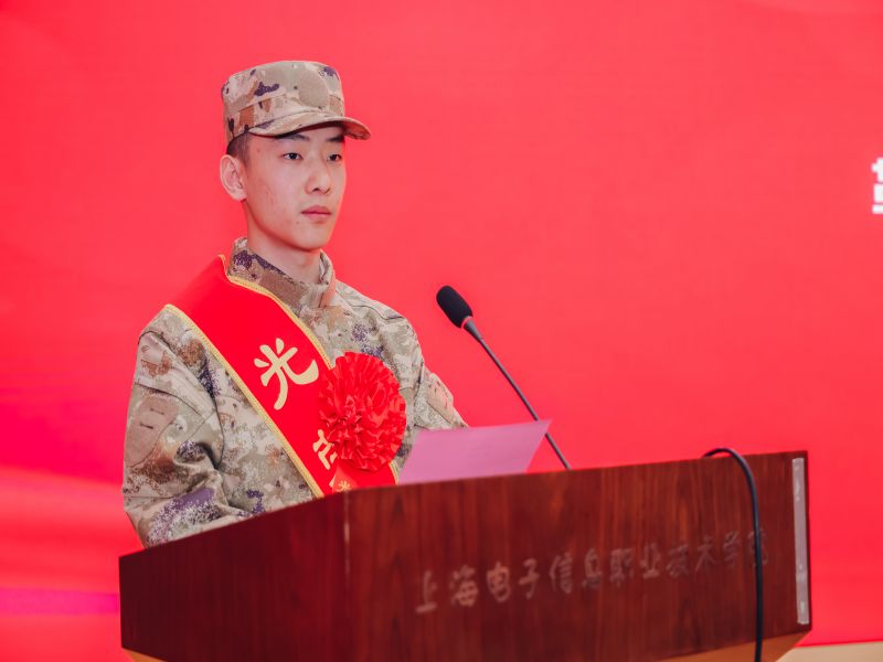 通信与信息工程学院靳一搏代表新兵发言。他首先对学校和老师的精心培养表示感谢,并代表全体新兵郑重承诺,到部队后一定会服从命令、听从指挥,忠于职守、刻苦训练,用实际行动回馈母校,报效祖国。