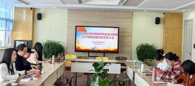 为深入学习贯彻党的二十大精神和习近平总书记关于教育的重要论述,推进师德师风建设,3月19日上午,公共基础学院在A205会议室召开师德师风和意识形态工作专题会议。会议由直属党支部书记朱清主持,学院全体党员及教师代表参加。