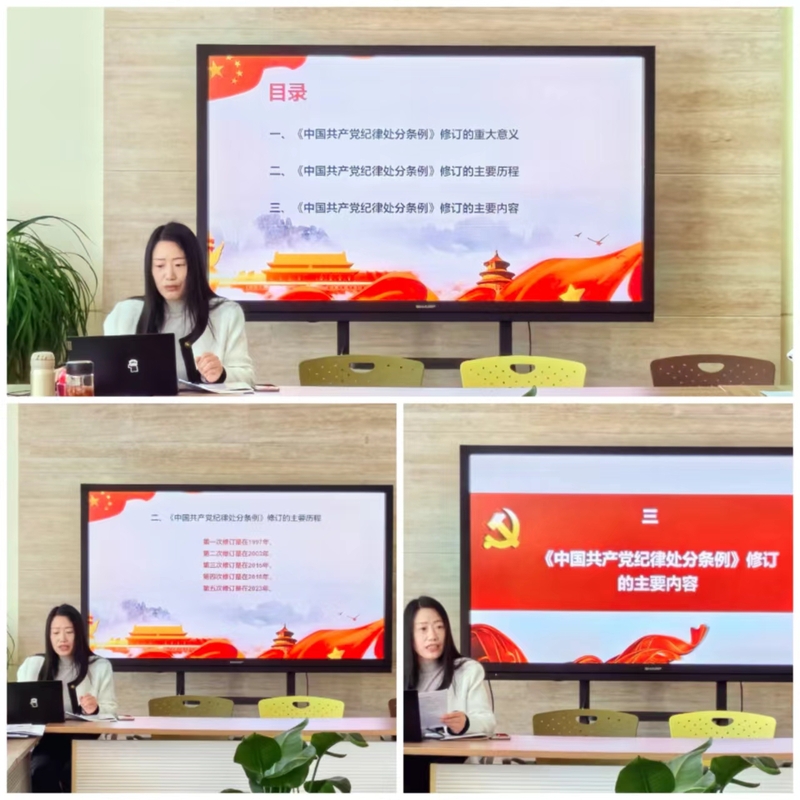 为进一步贯彻落实党风廉政建设,提高党员遵纪守法意识,3月19日,公共基础学院直属党支部在A205会议室开展主题党日活动暨书记上党课,会议由直属党支部书记朱清主持。此次活动的主要内容是组织全体党员深入学习新修订的《中国共产党纪律处分条例》(以下简称《条例》)。