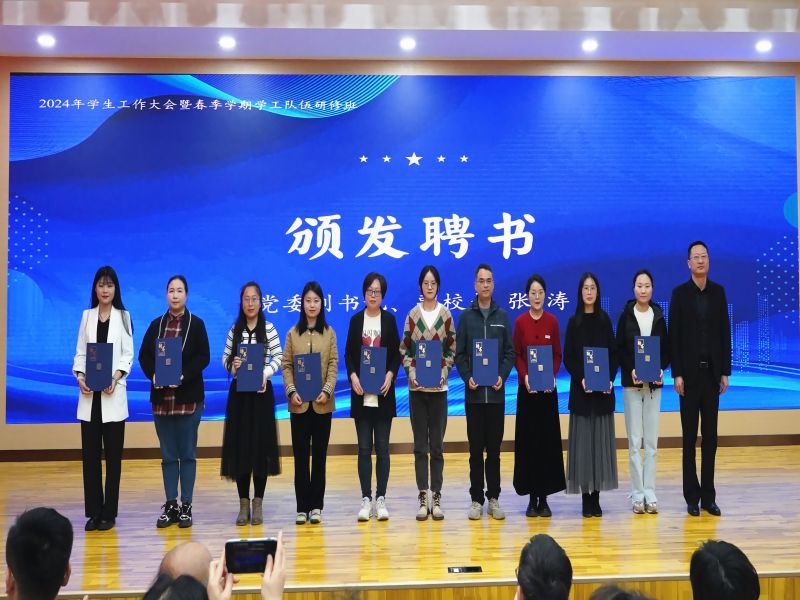 会议对在2023年学生工作各条线取得优异成绩的集体和个人进行了表彰,对辅导员“9+X”专业化发展方向带头人、骨干、新进辅导员成长导师颁发了聘书。