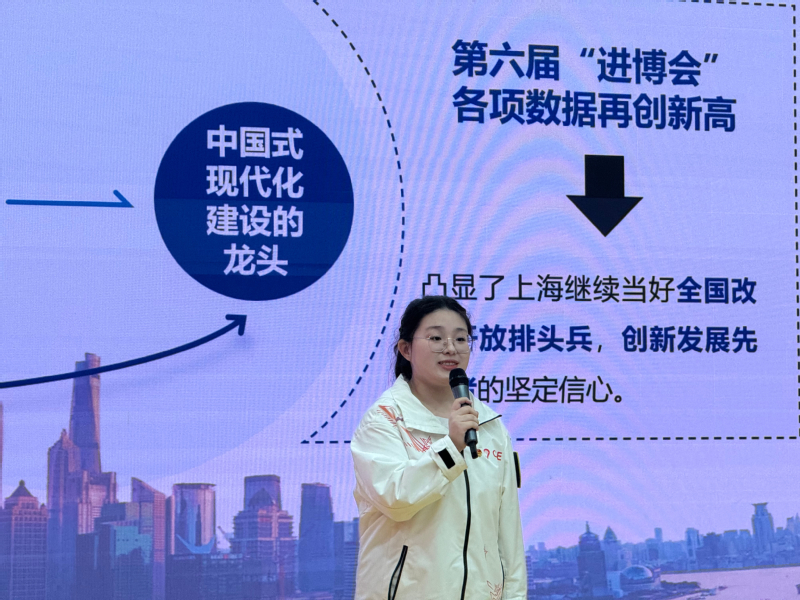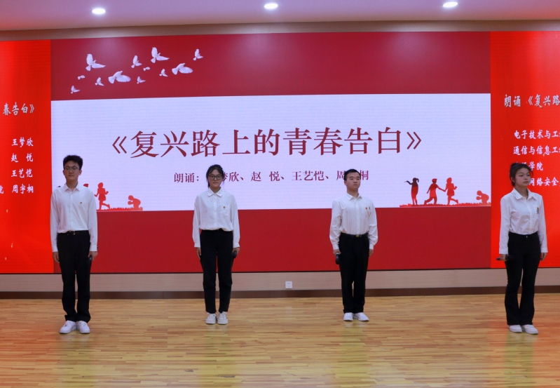 活动同时展演了微团课获奖作品《从进博到世界,奋力描绘新时代中国式现代化》、朗诵节目《复兴路上的青春告白》,展现出我校青年学子不忘初心,赓续红色血脉,立志民族复兴,携手共向未来的青春风采。