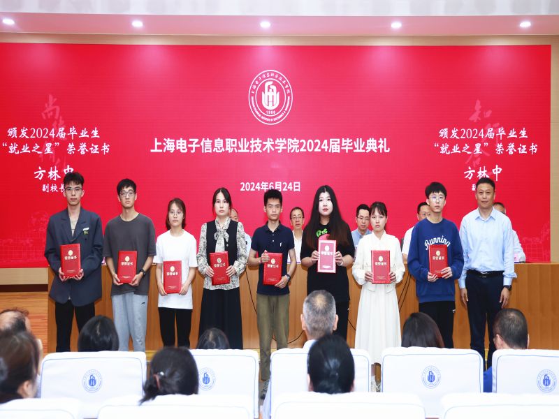 学校党委副书记、纪委书记丁磊宣读《关于表彰上海电子信息职业技术学院2024届优秀毕业生、“就业之星”的决定》,对邵逸男等124位2024年度上海市优秀毕业生,何美红等187位2024年度学校优秀毕业生,刘文瑞等41位2024届毕业生“就业之星”予以表彰。