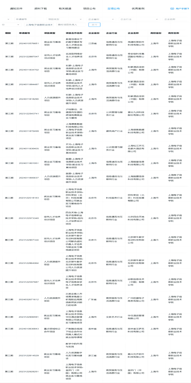 近日,教育部发布了《关于公布教育部第三期供需对接就业育人项目立项名单的通知》(教就业司函〔2024〕23号),上海高校达成项目立项347项,我校20个项目获得立项。其中定向人才培养培训项目5项、就业实习基地项目10项、重点领域校企合作项目1项、人力资源提升项目4项。