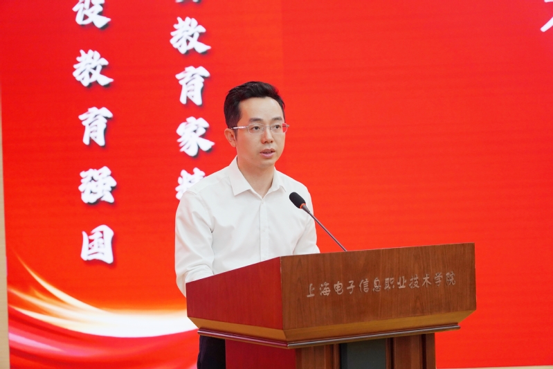 国务院特殊津贴专家、东方英才计划拔尖项目入选者袁名伟、全国职业院校技能大赛指导老师俞玉莲作为教师代表分别发言,分享了各自在教学科研、技能竞赛、职业教育观念、立德树人、创建职业本科等方面的工作感悟。电子技术与工程学院学生赵雯靖在发言中表达了对学校老师谆谆教导的感激和祝福之情。