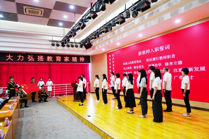 “忠诚人民教育事业,依法履行教师职责,为人师表、敬业爱生、严谨治学、修身立德……”2024年度国家自然科学基金青年项目获得者吴春芳作为领誓人,带领全体新教师庄严宣誓。