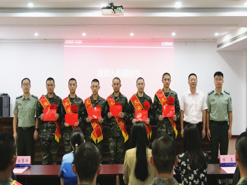 欢送会在庄严的国歌声中拉开帷幕,新战士身披绶带、胸戴红花,眼神坚毅、整装待发。学校人民武装部副部长吴奇峰宣读了学校2024年下半年33名预定新兵名单及分配情况。