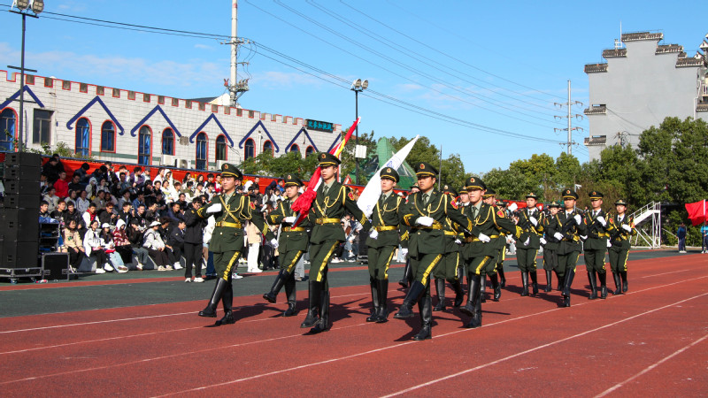 国旗护卫队迈着整齐有力的步伐,护送着鲜艳的五星红旗率先入场。伴随着激昂奋进的运动员进行曲,校旗队、红旗队以及各二级学院代表队方阵依次步入会场,他们满怀热情与斗志,步伐坚定,充分展现了新时代青年学生积极向上、充满活力的精神风貌。随着激昂的国歌奏响,五星红旗在全体师生的肃立敬礼中徐徐升起。