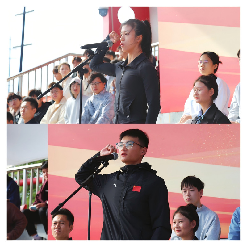 裁判员代表曹淼、运动员代表刘宝山分别代表本届运动会裁判员、运动员宣誓。他们庄严承诺将遵守比赛规则,公平竞争,以体育精神为指导,展现出最佳的竞技状态和道德风貌。