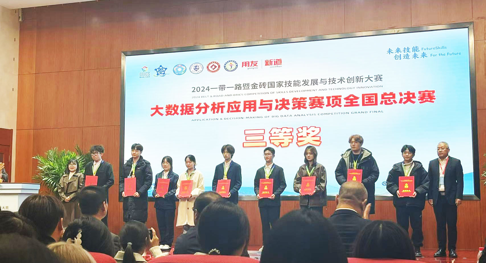 11月9日至10日,2024第八届一带一路暨金砖国家技能发展与创新大赛之高职组全国总决赛在辽宁金融职业学院隆重举办。我校参赛队荣获全国总决赛金融大数据赛道三等奖(指导老师:李诚、宋慧涛)。