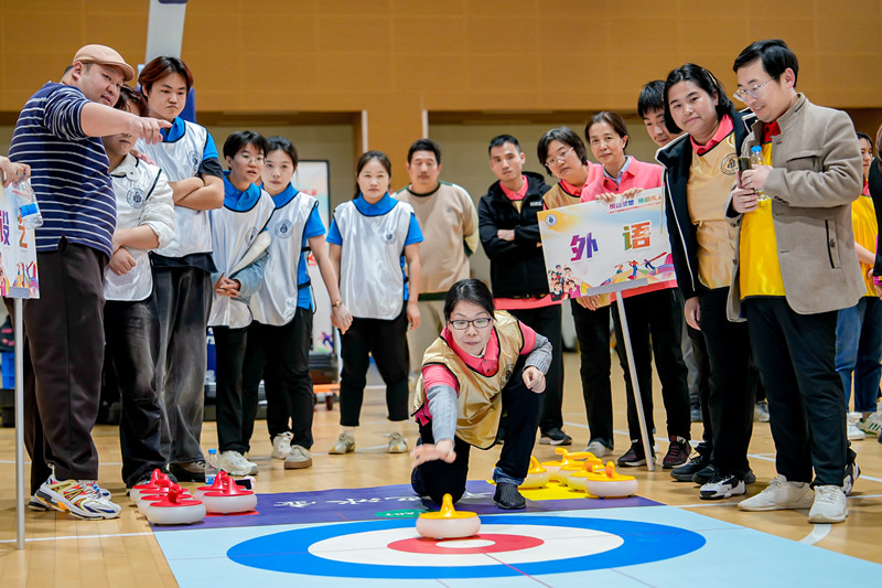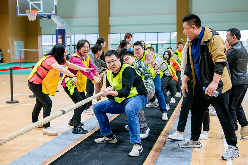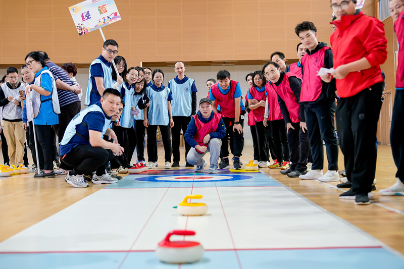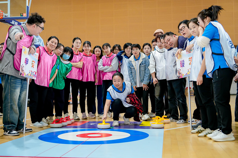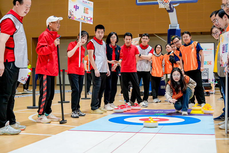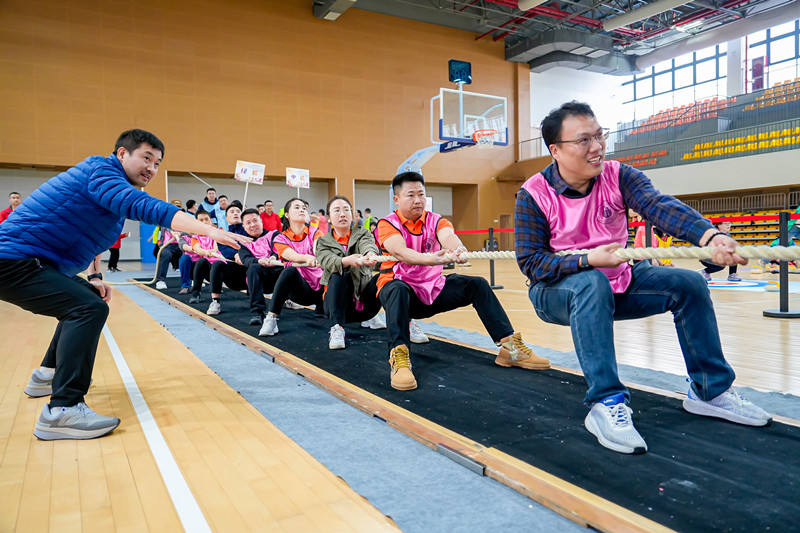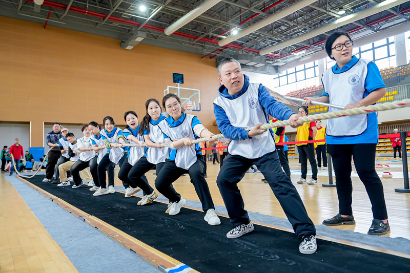 广播操比赛后15支队伍参加了“旱地冰壶、力拔山河”2个集体趣味项目。旱地冰壶是一项需要个人技术与团队战术配合的运动项目,动静结合,注重技巧,讲究队友间的合作性与策略。在冰壶比赛中,教职工们斗智斗勇,占位、进营、击打,群策群力、奋勇拼搏,展现了取与舍的智慧,在动静之间快乐成长。拔河比赛中各参赛队伍斗志昂扬,拔河过程跌宕起伏,标志胜利的红丝带来回移动。在一阵阵加油声中,教职工们热情高涨,比赛选手全力以赴,场外呐喊声不断,整个赛场气氛紧张而热烈。
