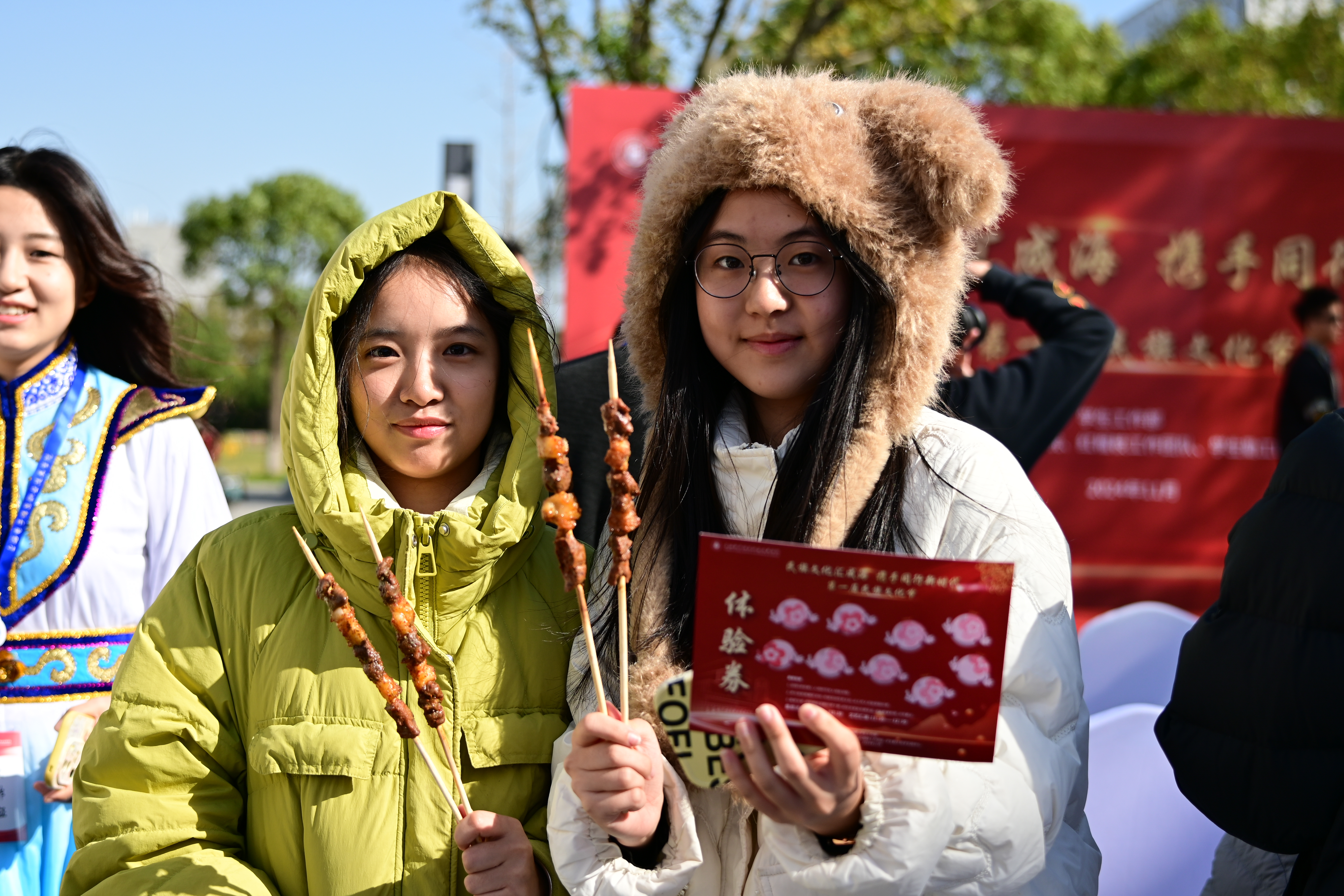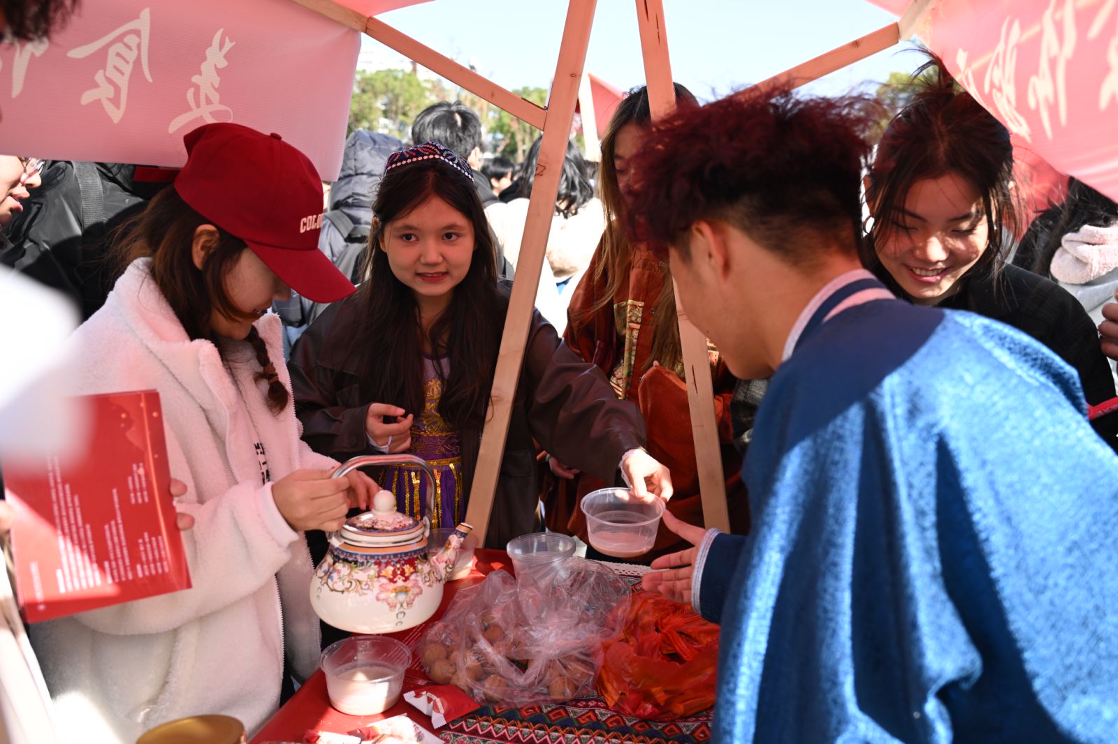 美食体验区,开启了一场舌尖上的奇妙旅行。烤羊肉串滋滋冒油、香气四溢;奶茶醇厚浓郁、暖人心扉;鲜花饼酥软可口、花香弥漫,更有烤包子、抓饭、手工酸奶、特色干果等汇聚各民族特色的美食让味蕾尽情绽放。师生在品尝美食的同时,深刻领略各民族独特的饮食文化魅力,感受美食背后蕴含的浓郁民族风情与人文情怀。