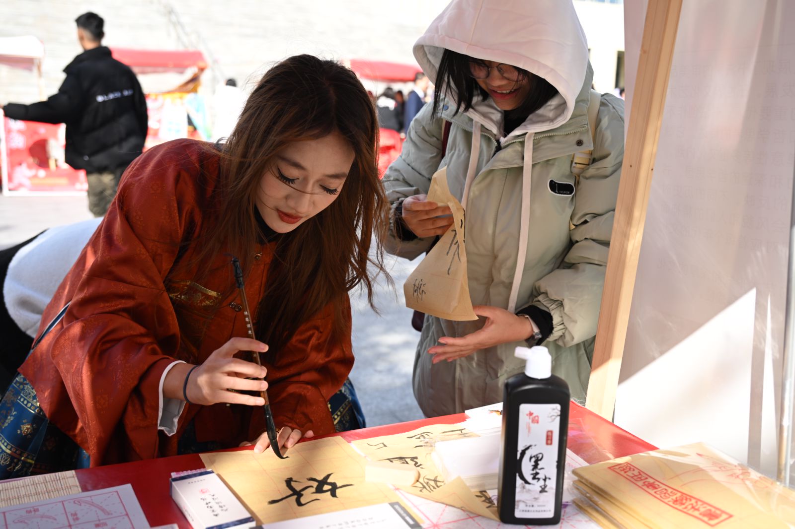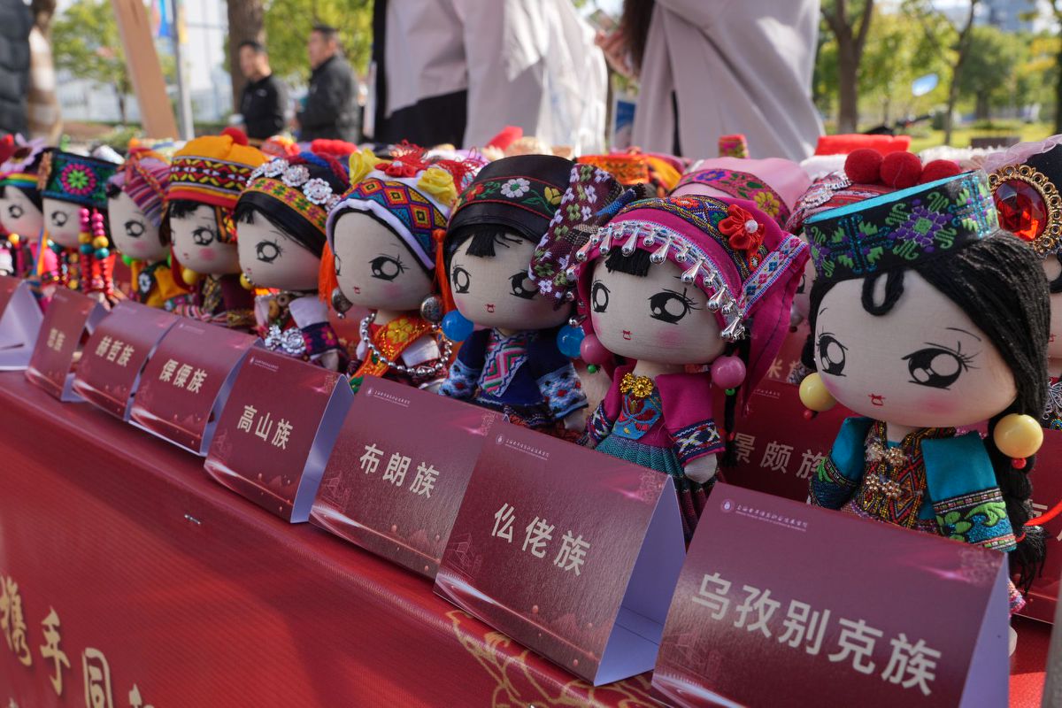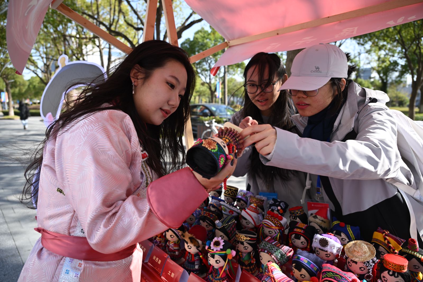 文化体验区内,各族绚丽多彩的服饰、独具匠心的手工艺品以及历史悠久的乐器静静地陈列着。每一件展品承载着中华民族的记忆与智慧,让同学发现、品味与感悟。