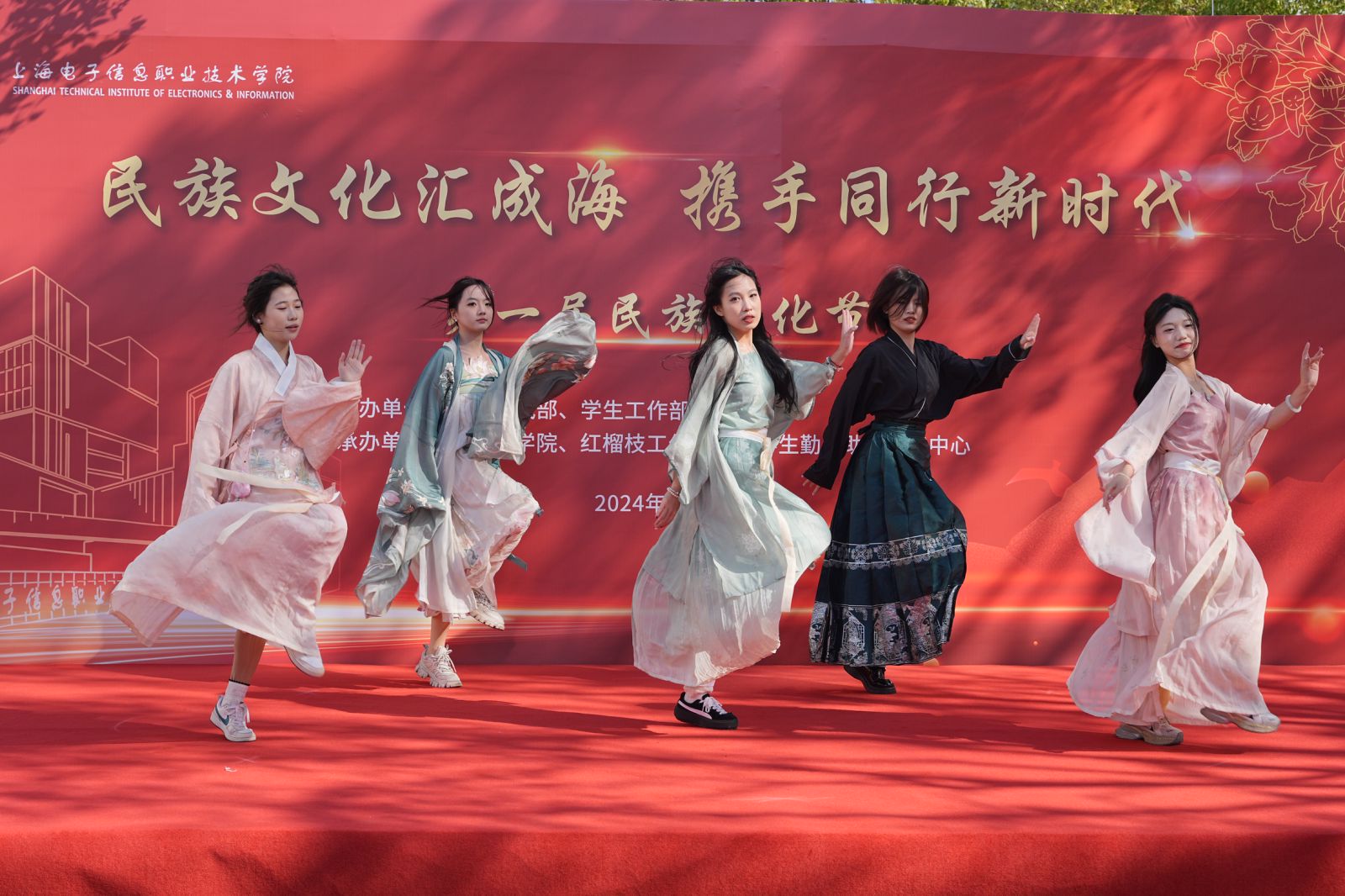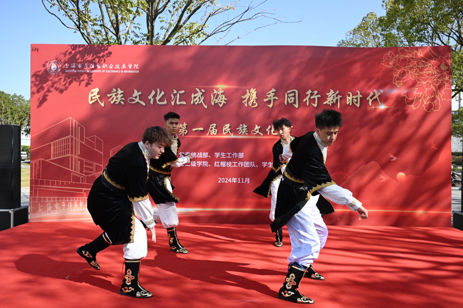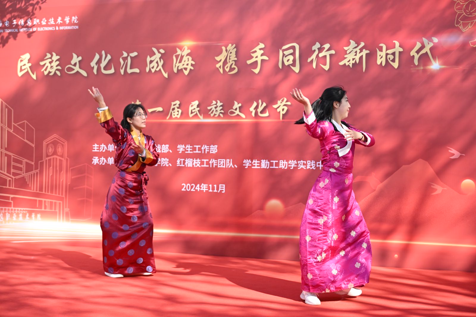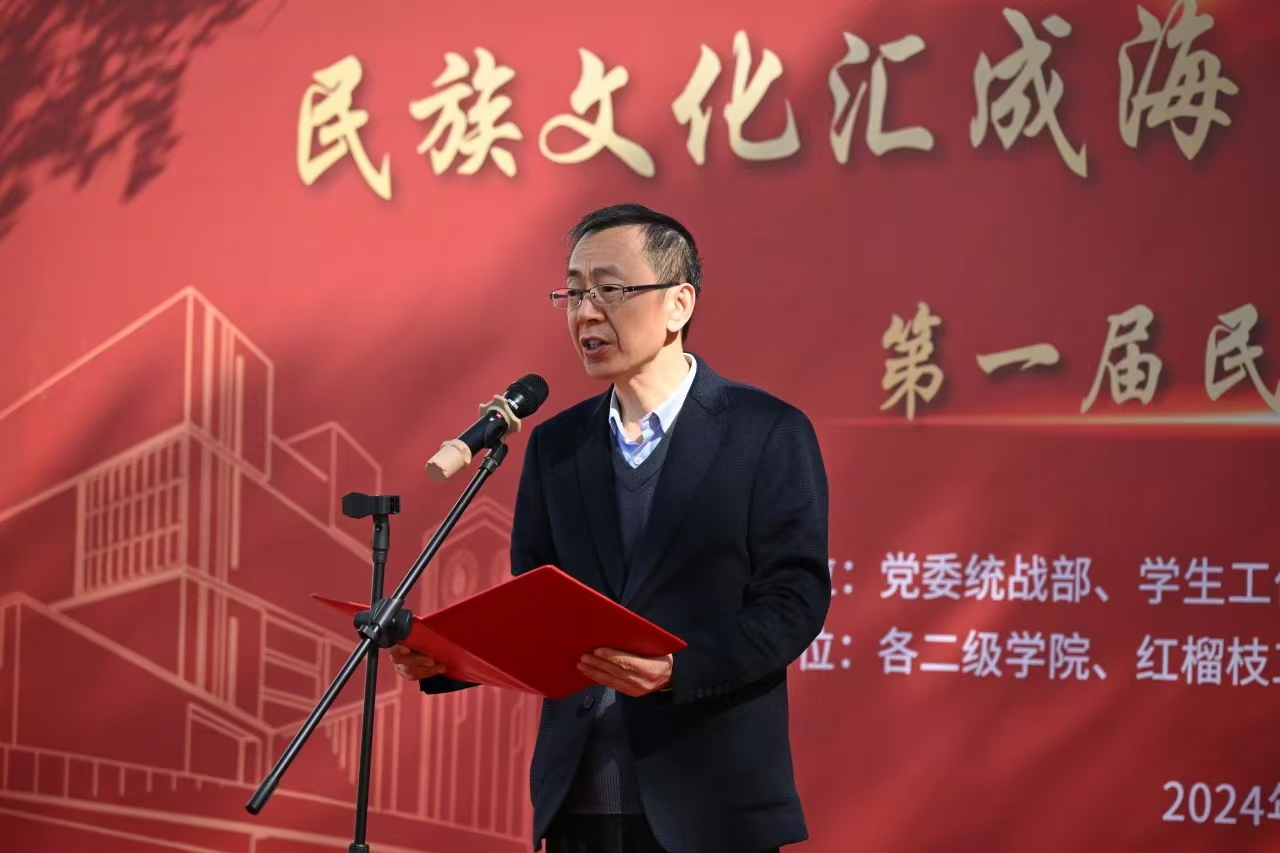 11月28日,由学校党委统战部、学生工作部联合主办,各二级学院、红榴枝工作团队、学生勤工助学实践中心共同承办的“民族文化汇成海 携手同行新时代”学校第一届民族文化节成功举办。学校党委书记傅建勤,党委副书记、纪委书记丁磊,党委副书记、副院长张涛出席活动。党委办公室、党委组织统战部、党委宣传部、学生工作部、后勤保卫处、团委等部门负责人,各二级学院学生工作负责人及师生代表参加活动。现场气氛热烈,师生其乐融融。